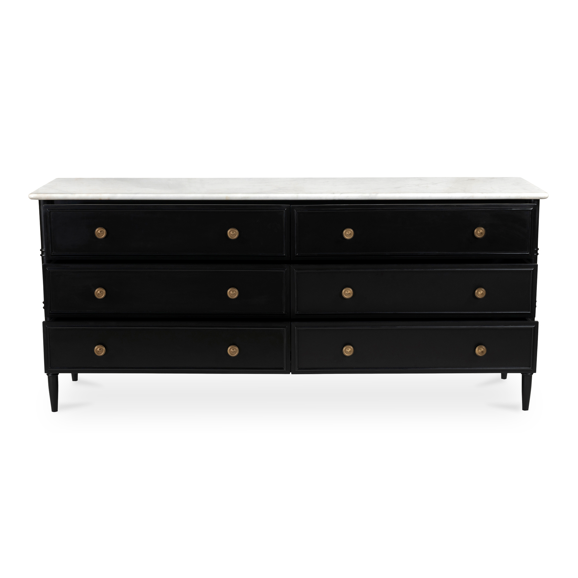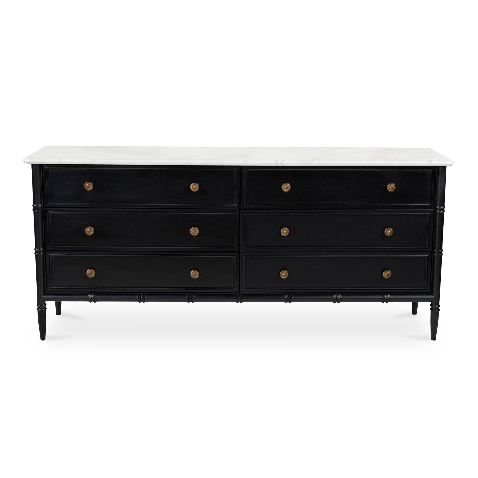 Inspired by the everyday grace of Provence style, the Laura 6-drawer chest showcases a classically graceful profile with distinctive turned details. Crafted from Mango wood, this piece is crowned with an expressive marble top and finished with solid antique finished brass finish handles, adding a touch of timeless sophistication and natural beauty.