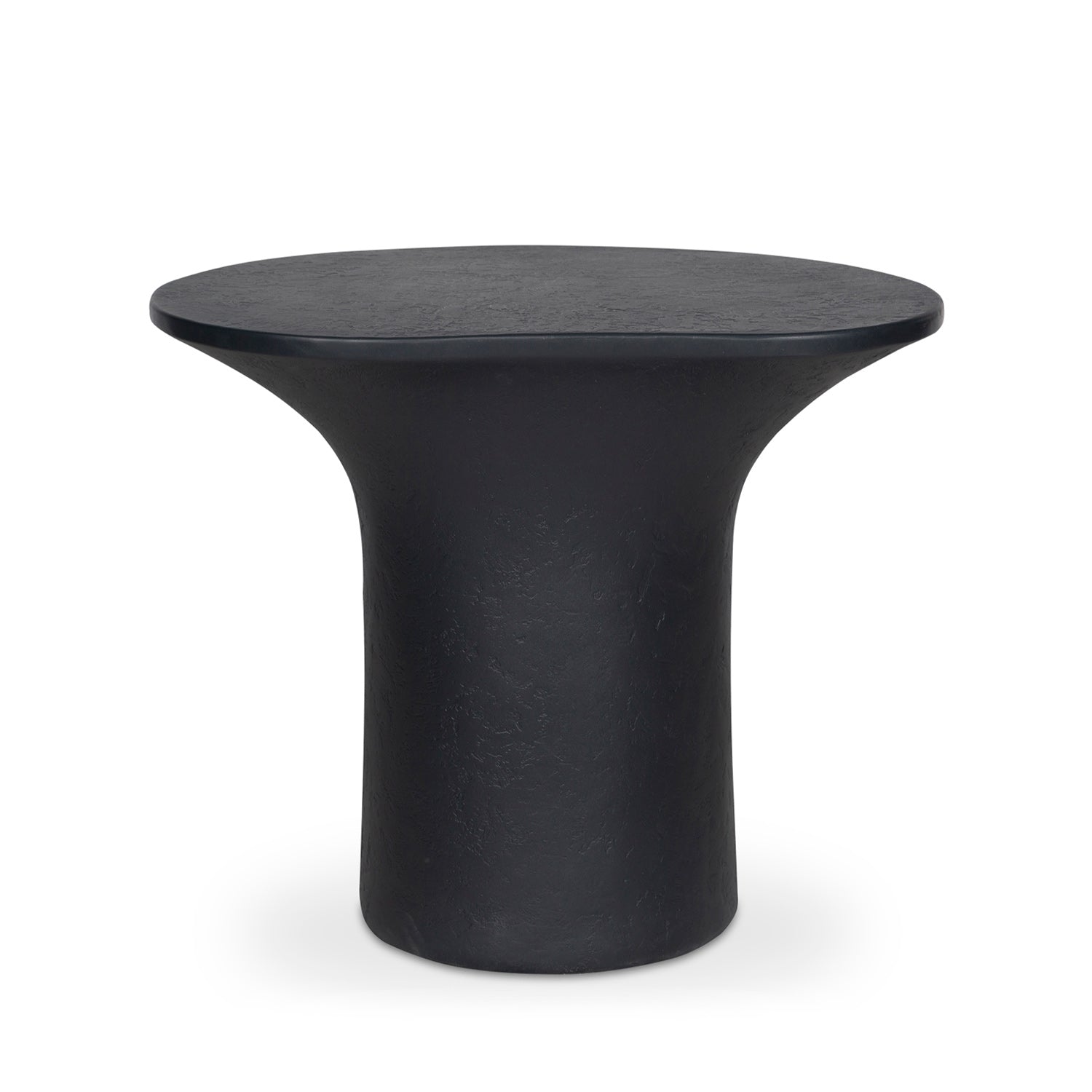 A bold blend of style and stability, the Lauren outdoor accent table features a freeform top perfectly balanced upon a pedestal-style base for a modern yet grounded look. Crafted from glass fiber-reinforced Concrete that combines cement, glass fiber, and styrofoam for durability and lightness, its rough texture adds a layer of tactile interest, transforming its contemporary form into a centerpiece of conversation.