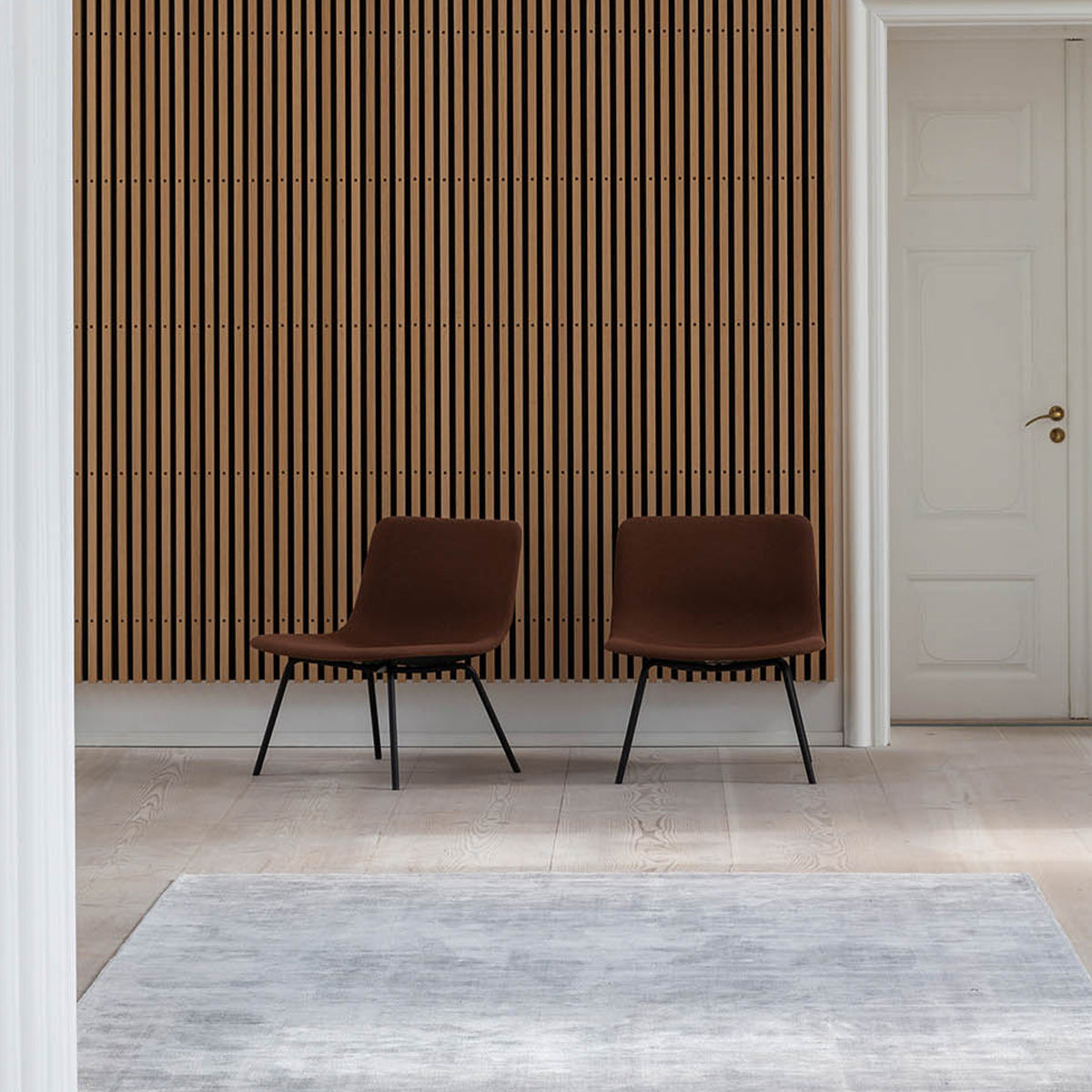 The Karma rug is made of recycled bamboo fibers which gives a durable rug with a light shine which is easy to maintain.