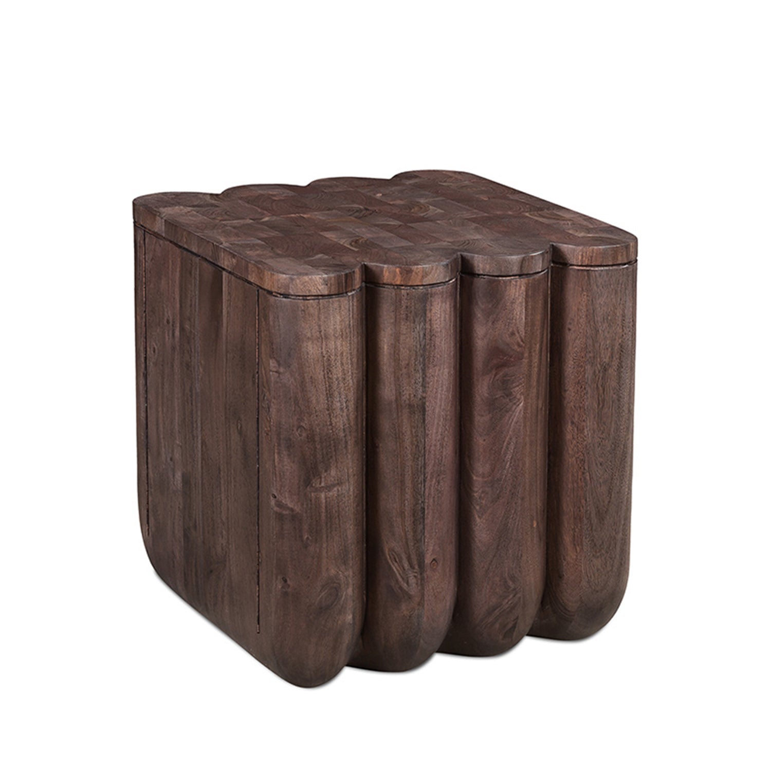 This is a playful interpretation of rhythm and repetition—a waved silhouette made of Acacia wood brings all that organic energy that calms and rebalances the senses. While this accent table's expressive profile adds both visual and tactile appeal to any interior setting, this design also utilizes end-grain pieces which come together into a beautifully patterned tabletop. Completing this distinctive piece is a unique seam that runs along with the tabletop joinery technique, visible throughout the piece's side profile.
