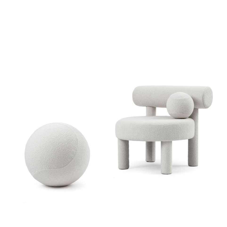 The Low Chair Gropius will always look like a functional art object in your house. Every single piece involves careful manual work by our craftsmen. Low Chair gathered from the cylinders and balls. A round pillow and an ottoman appeal to interact: to pump, to play, to bubble.