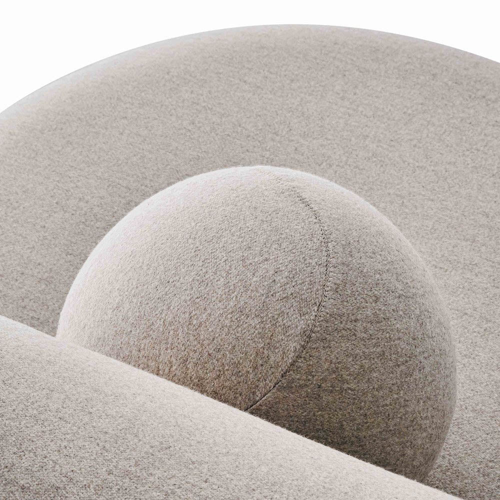 The Gropius Low Chair will always look like a functional art object in your home. Every piece involves attentive work from our craftsmen. Low Chair inspired by the cylinders and balls. A round pillow and an ottoman appeal to interact: to pump, to play, to bubble.