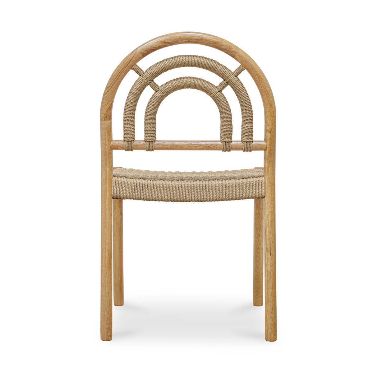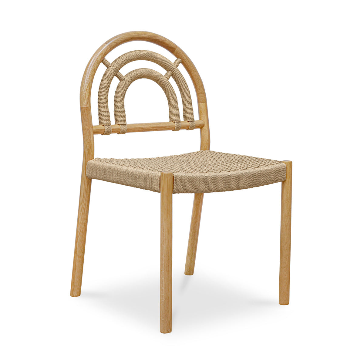 The Lucia dining chair pays homage to the past with its classic paper rope seat and exquisite cane-wrapped details, while its geometric arched back and clean silhouette bring a fresh and contemporary touch. Its solid oak construction complements the chair's aesthetic, bringing warmth and sophistication.