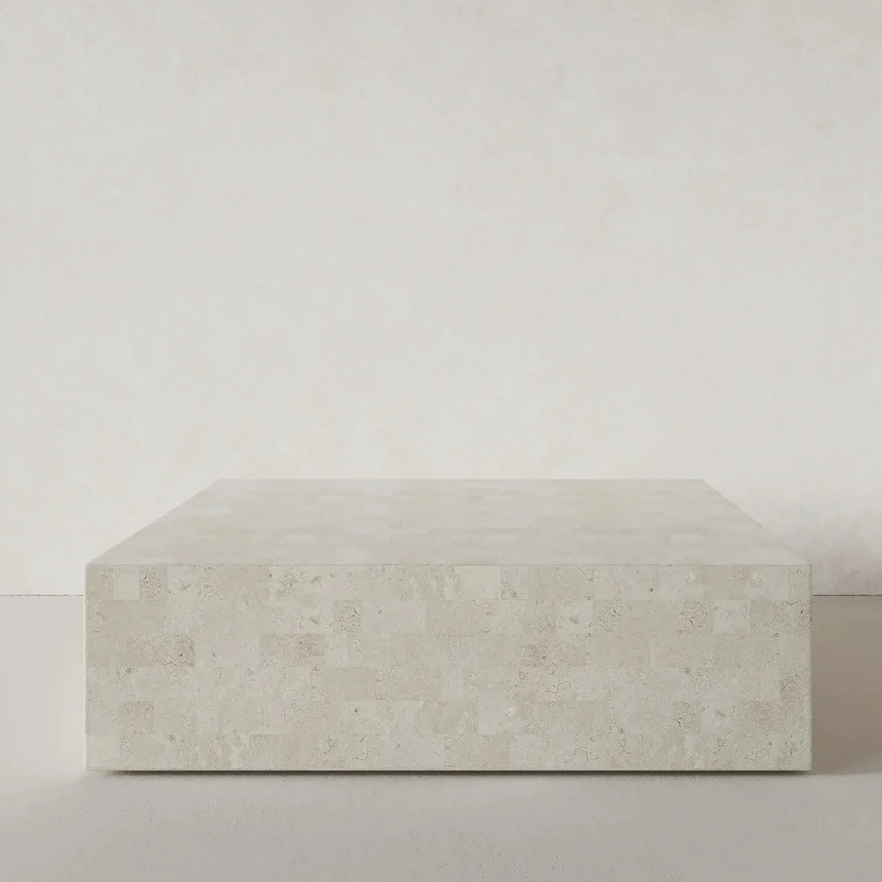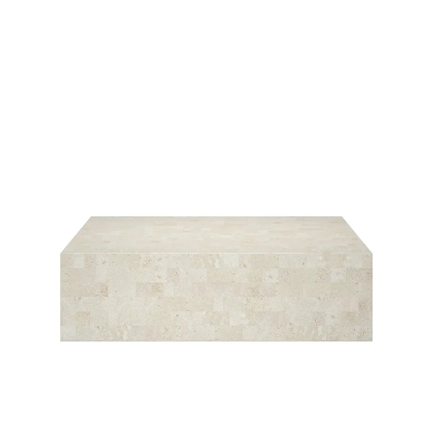 Our Mala Coffee Table, Fossil Stone. Bold yet understated in stature and confident in its pared back and timeless design. A classic plinth profile, the perfect addition to any space.
