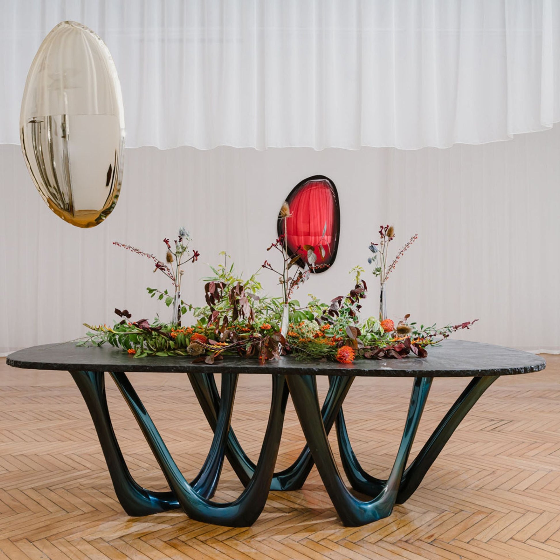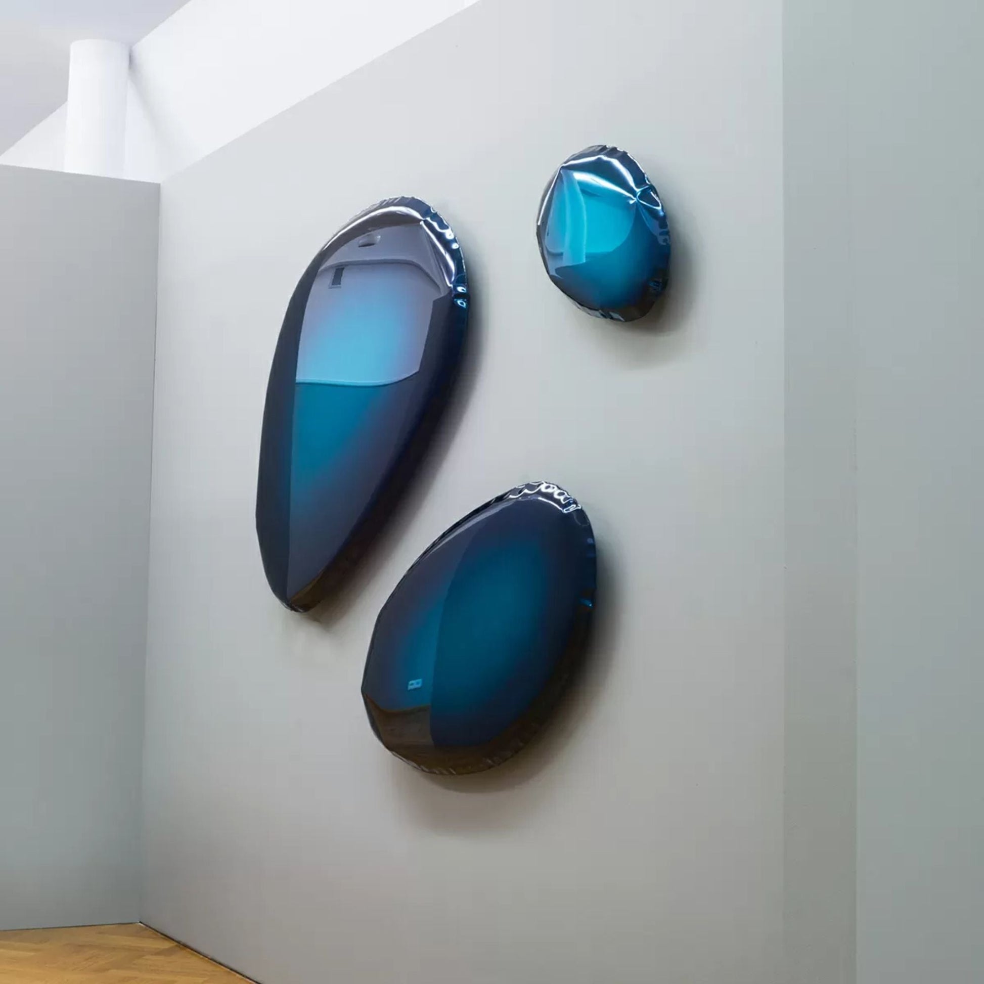 TAFLA O series is characterized by smooth, optically light shapes inspired by liquid droplets and thanks to its unique form, combines the world of design, art and technology. TAFLA collection is a radical step towards such transformations. Mirrors made with FiDU technology are a result of free deformation caused by high internal pressure. This process creates objects of great durability yet of subtle structure. Polished stainless steel