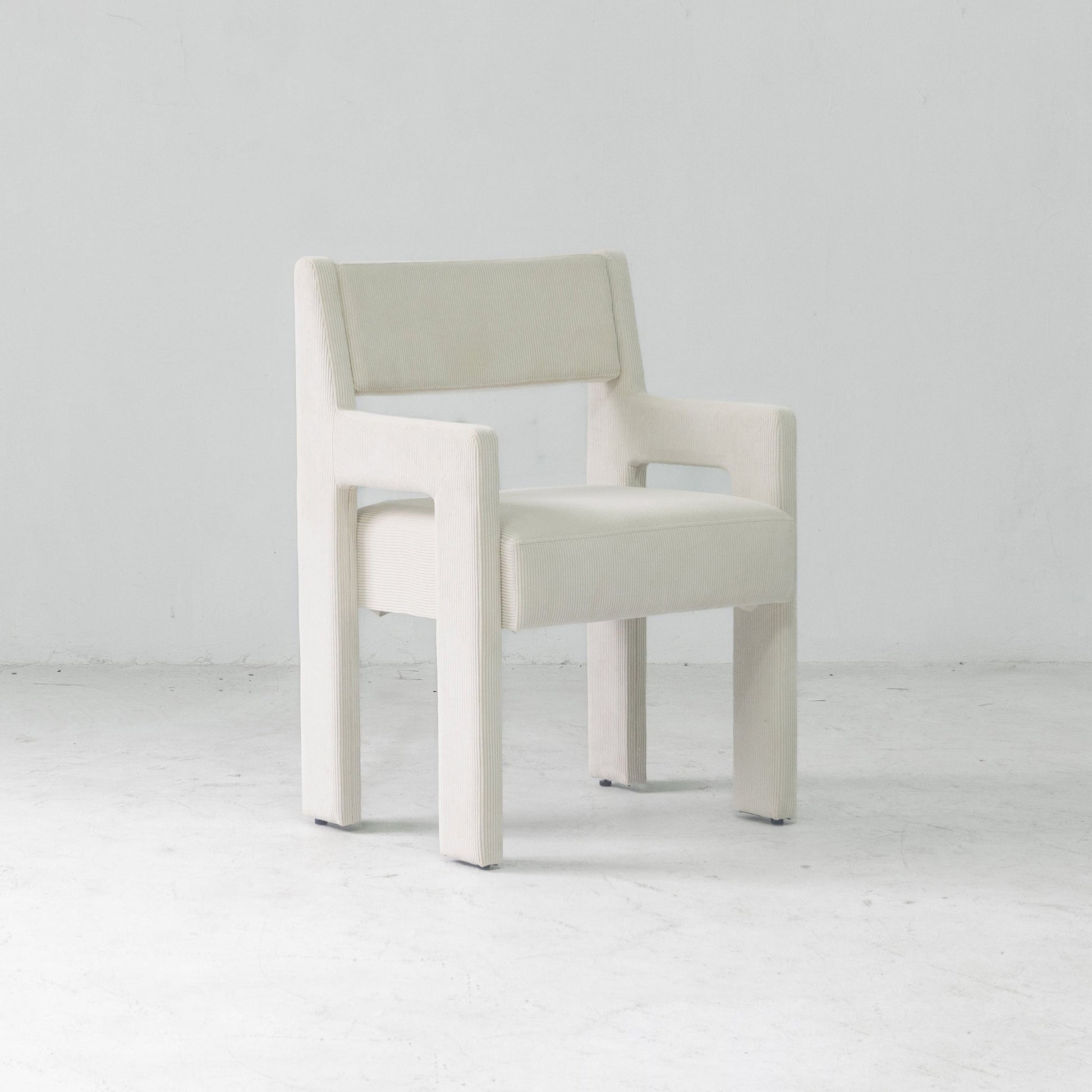 The Morel Armchair is the all fabric version of the Reka Armchair, featuring the same emphasis on contrasting width. In designing the chair, we played with wide and narrow, thick and thin: the legs are wide and flat along one axis, thin along the other, while the seat cushion was elongated and fattened vertically. We designed this chair for comfortable multi-hour sitting sessions, and used a slightly wider footprint and backrest for comfort. The fabric is durable, meant for daily use, and resistant to spills and stains.