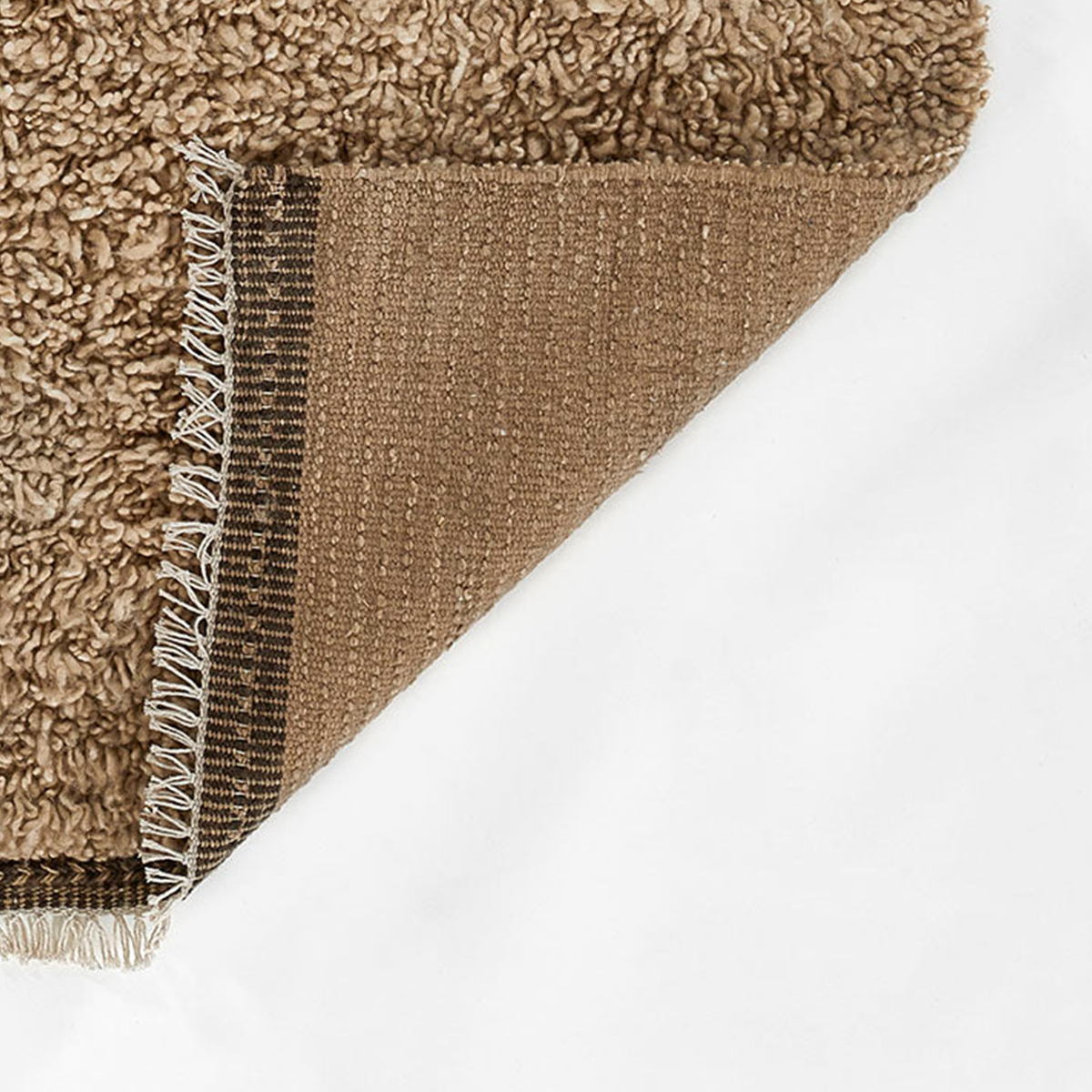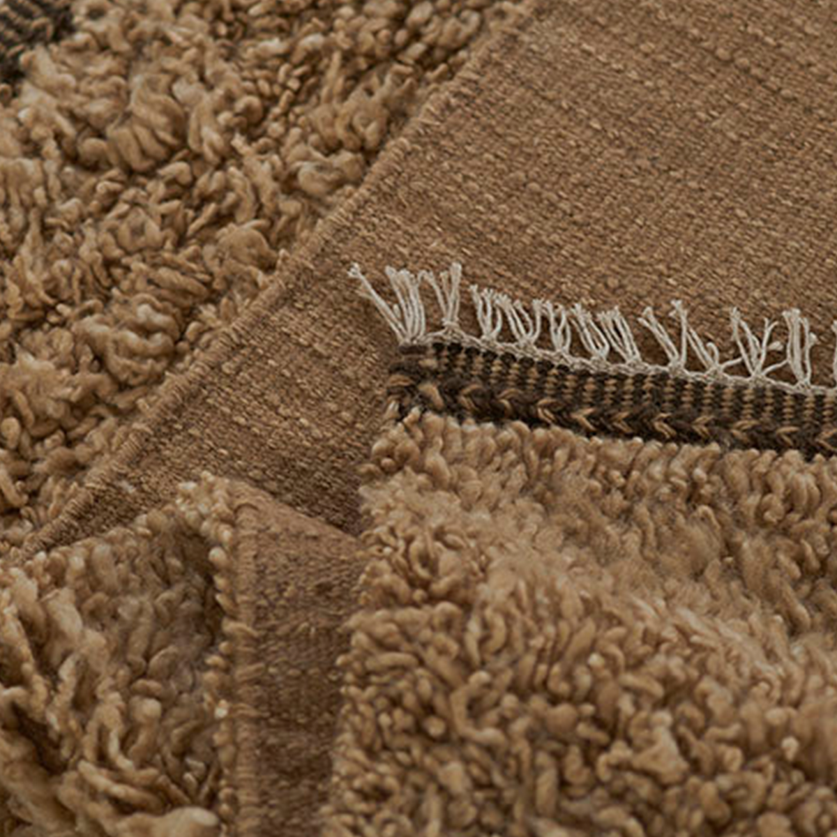 Unique and exaggerated one-sided tassel fringe adds a distinctive touch. Hand-sheared finish adds a tactile texture and dimension. Versatile enough to be used in various indoor spaces, including living rooms, bedrooms, dining rooms, hallways, and office rooms.