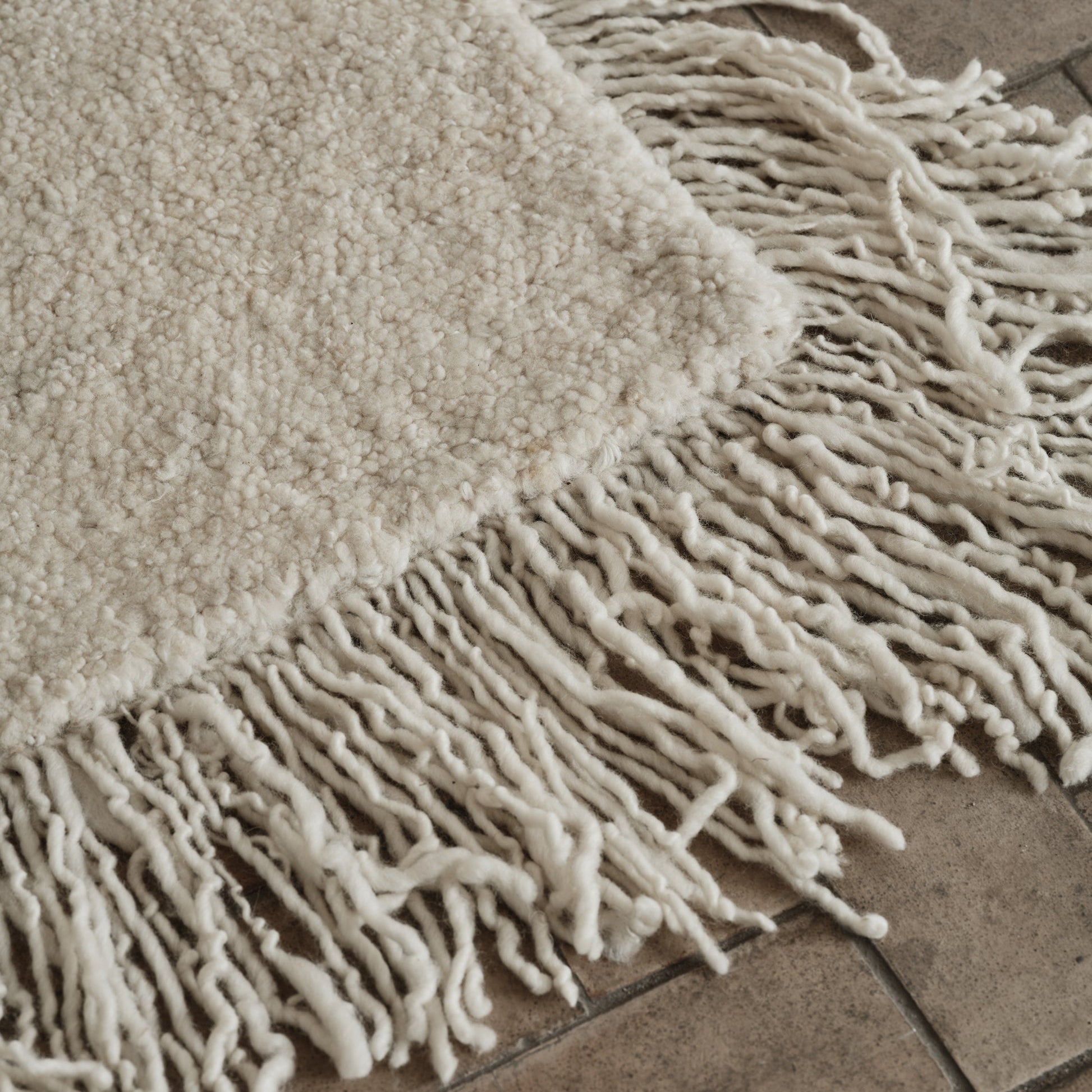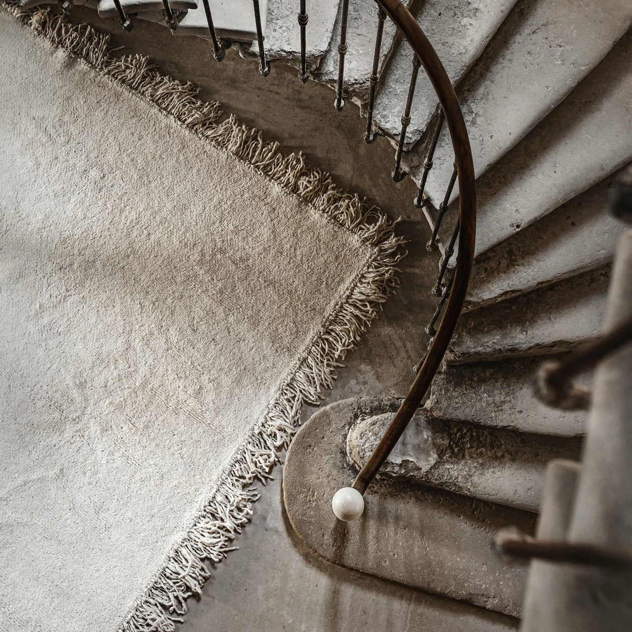 The rug is woven in natural and unbleached New Zealand wool and comes in a chalky off-white shade. An iconic piece to keep and love for a lifetime.