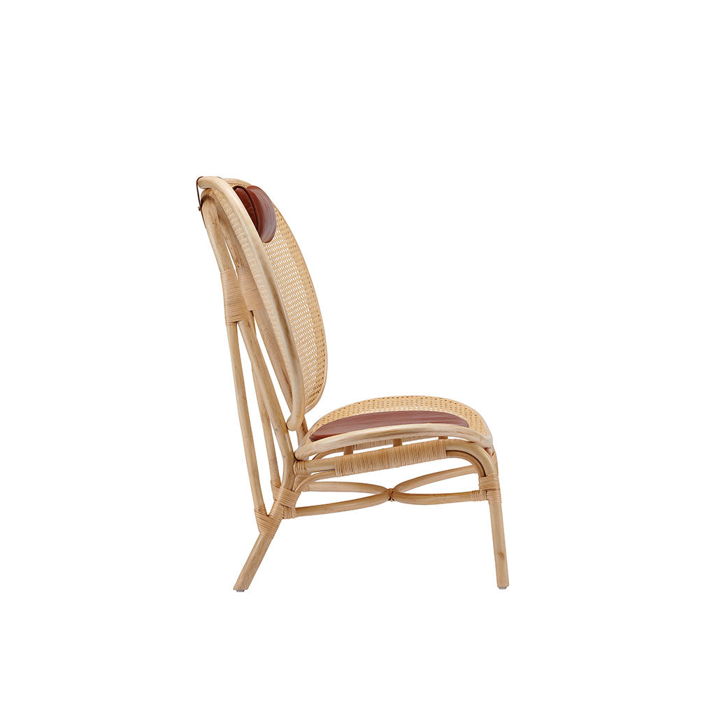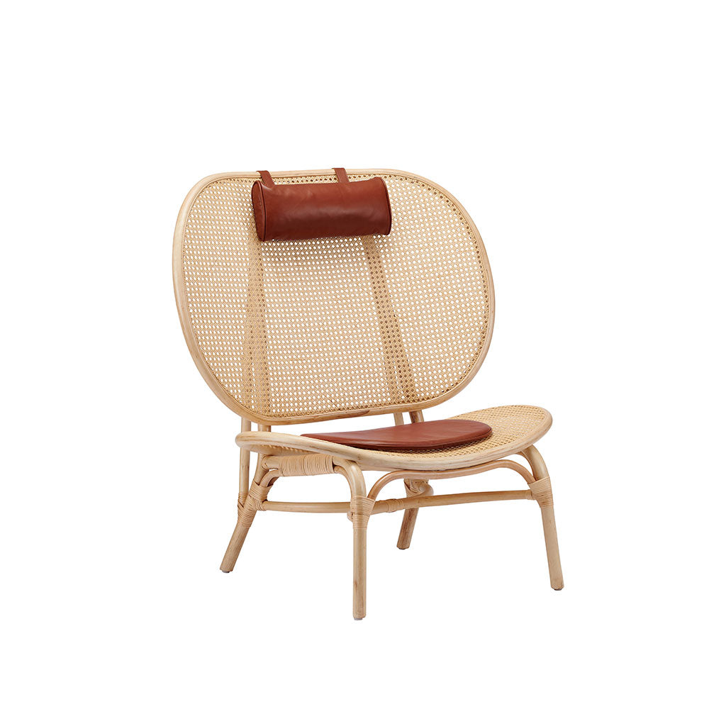 - The cushion is made of cognac or black aniline leather, and the height of the neck pillow can be adjusted in 3 steps using a brass handle.