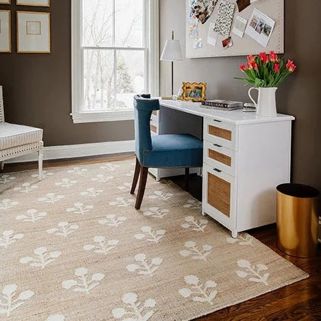 Orchard is a beautiful jute and wool combination quality inspired by Indian block print patterns. The idea for this collection was to recreate the block print simplicity with the organic appeal of a jute rug. These patterns are simple enough to work into any space, but the design elements reference back to block print, ikat styles and simplified wavy borders.