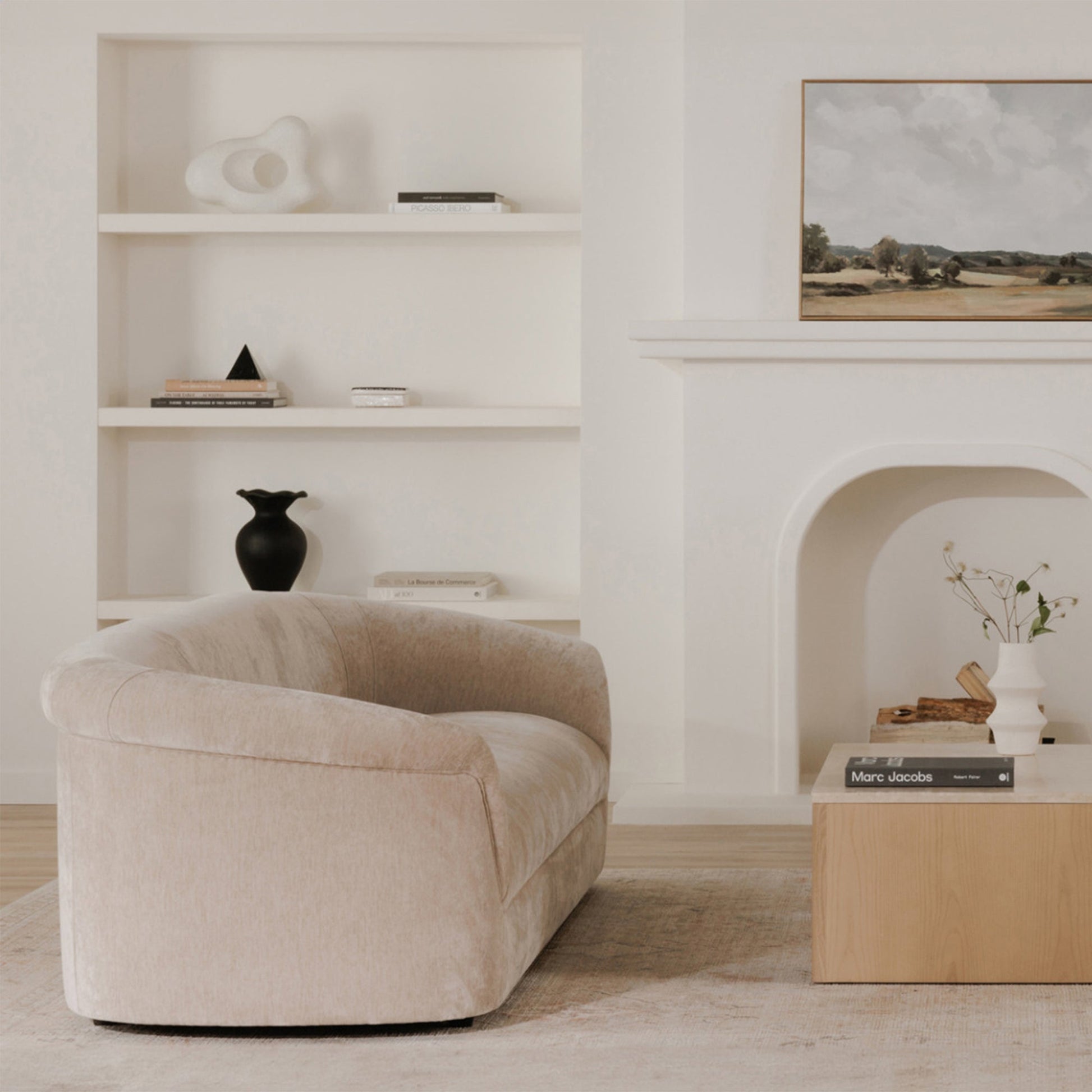 The perfect blend of vintage and contemporary, the Paige collection features a soft rolled arm silhouette, its timeless charm elevated by soft, textured velvet fabric upholstery. This piece is an appealing fusion of old-world charm and modern sophistication.