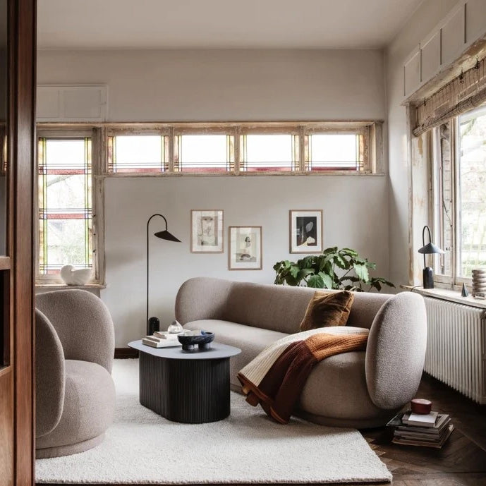 With its sturdy style, the Podia Table provides a beautiful surface for your living room. Beautifully proportioned, the Ferm Living Podia Oval coffee table features an Ash veneer surface with beautiful slatted wood sides.