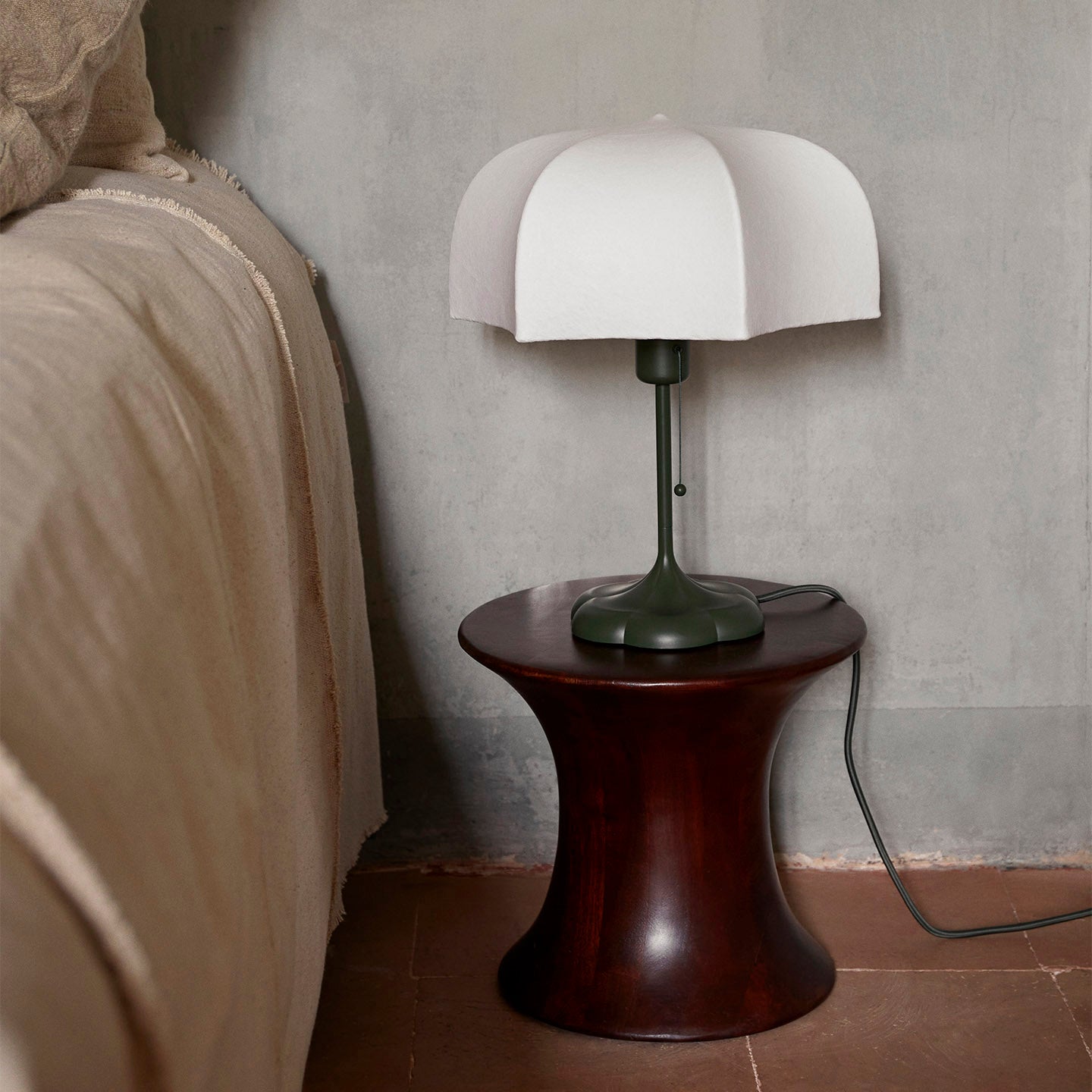 The non-woven polymer shade will beautifully patinate over time, giving it a unique appearance. Place the Poem on your bedside table or let it elegantly illuminate your desk.