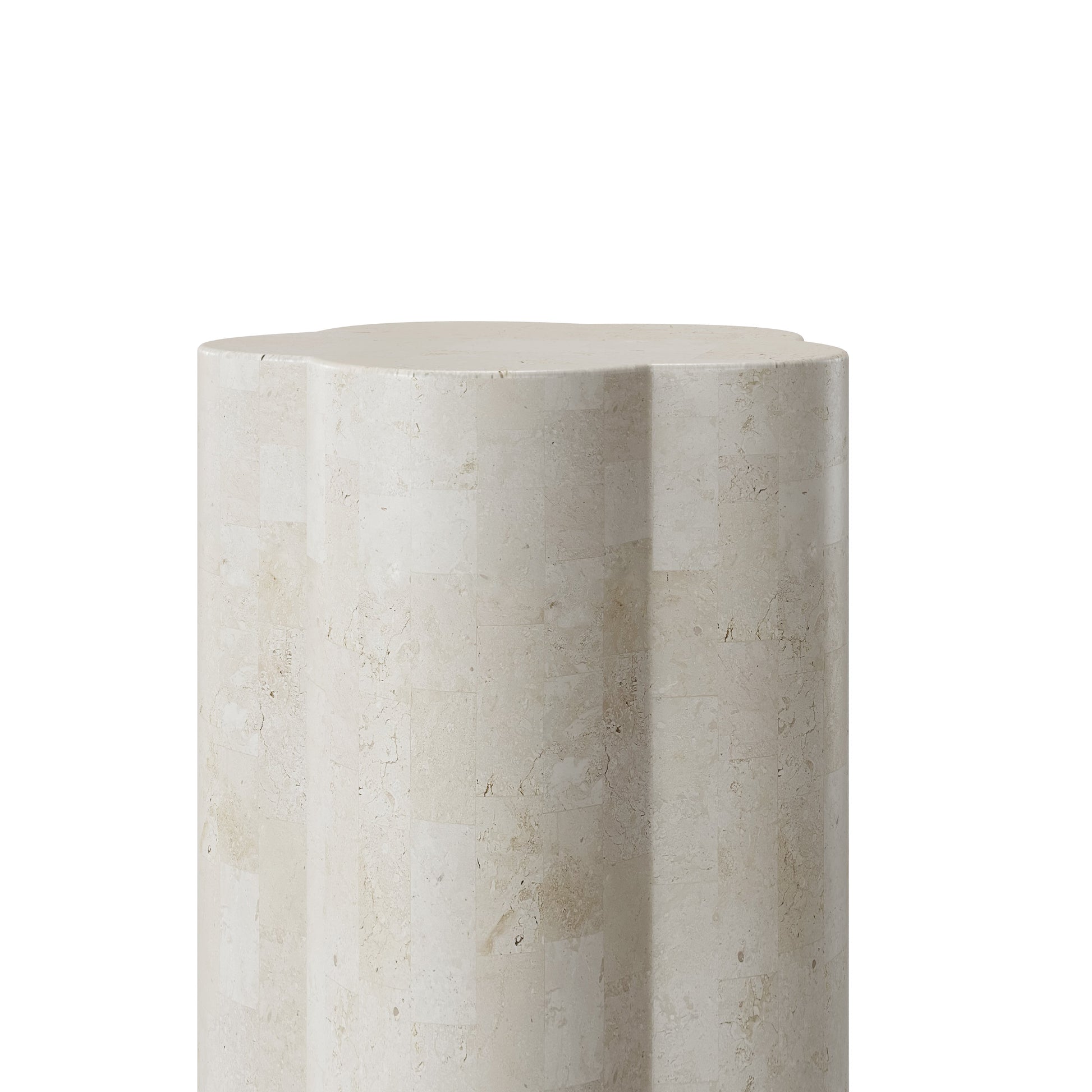The Limited Edition Poppy Plinth is an endearing silhouette of softly curved natural stone tiles hand carved on the cinquefoil design. Offering a unique dimension and form to your space.