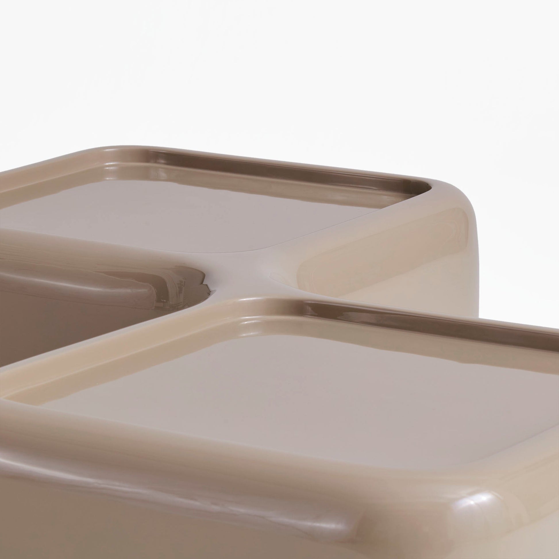 Each table is carefully handcrafted by skilled craftsmen from fiberglass, which is first cast in molds and then manually polished several times to achieve a high-gloss finish. The entire production process is done by hand and requires great craftsmanship. Modular Tables are available in five colors: white, brown, green, red and gray.