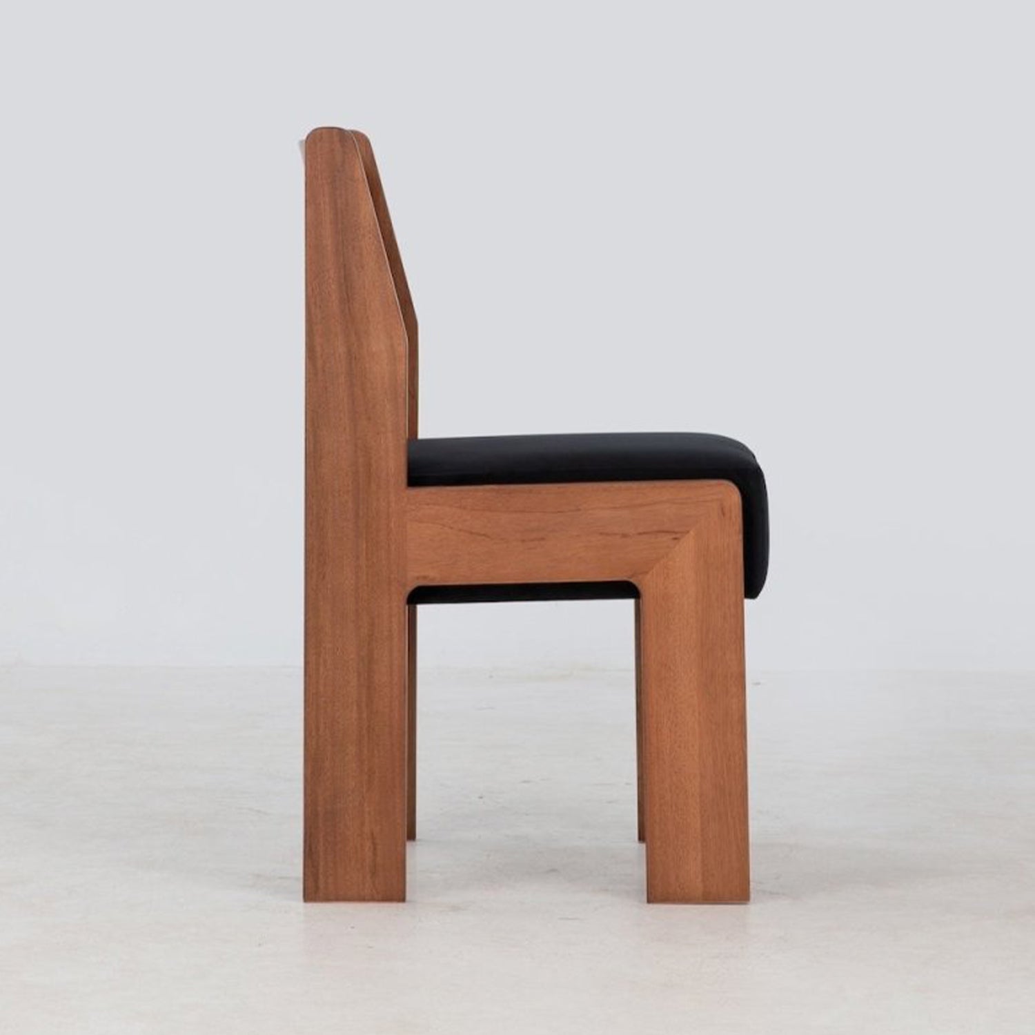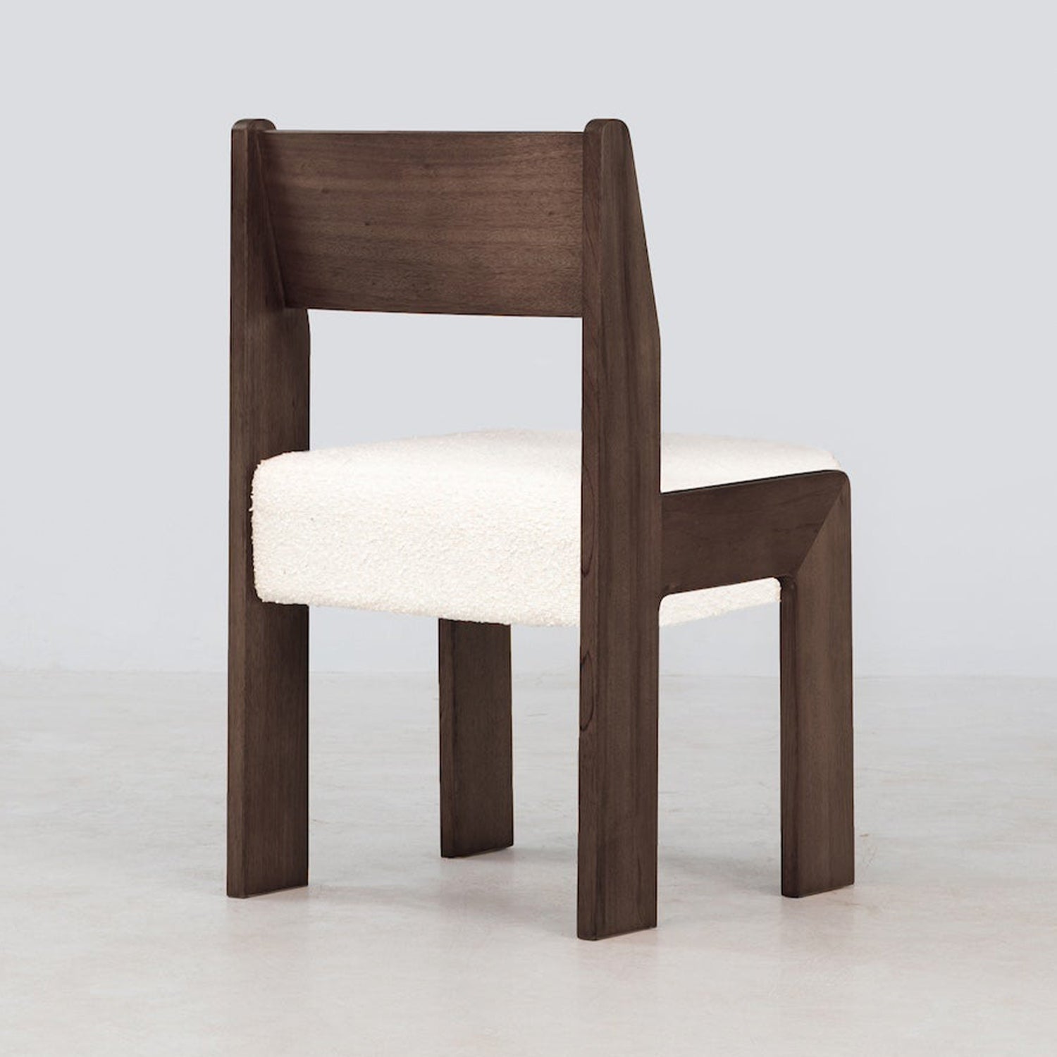 The Reka Side Chair spotlights contrasting width. In designing the chair, we played with wide and narrow, thick and thin: the legs are wide and flat along one axis, thin along the other, while the seat cushion was elongated and fattened vertically. We designed this chair for comfortable multi-hour sitting sessions, and used a slightly wider footprint and backrest for comfort. The wide panels emphasize the natural grain and luminescent sheen of the makata wood. The fabric is durable, meant for daily use, and resistant to spills and stains.