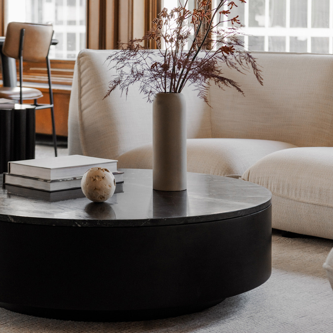 Iconically elemental to go alongside your daily rituals. The Rona coffee table keeps a low profile, keeping things easy with a simple design reminiscent of ancient days. Like stars in a night sky, the solid black marble tabletop is flecked with highlights of gold, bringing a sense of play to this dusky affair. A timeless stone statement with an effortless modern twist.