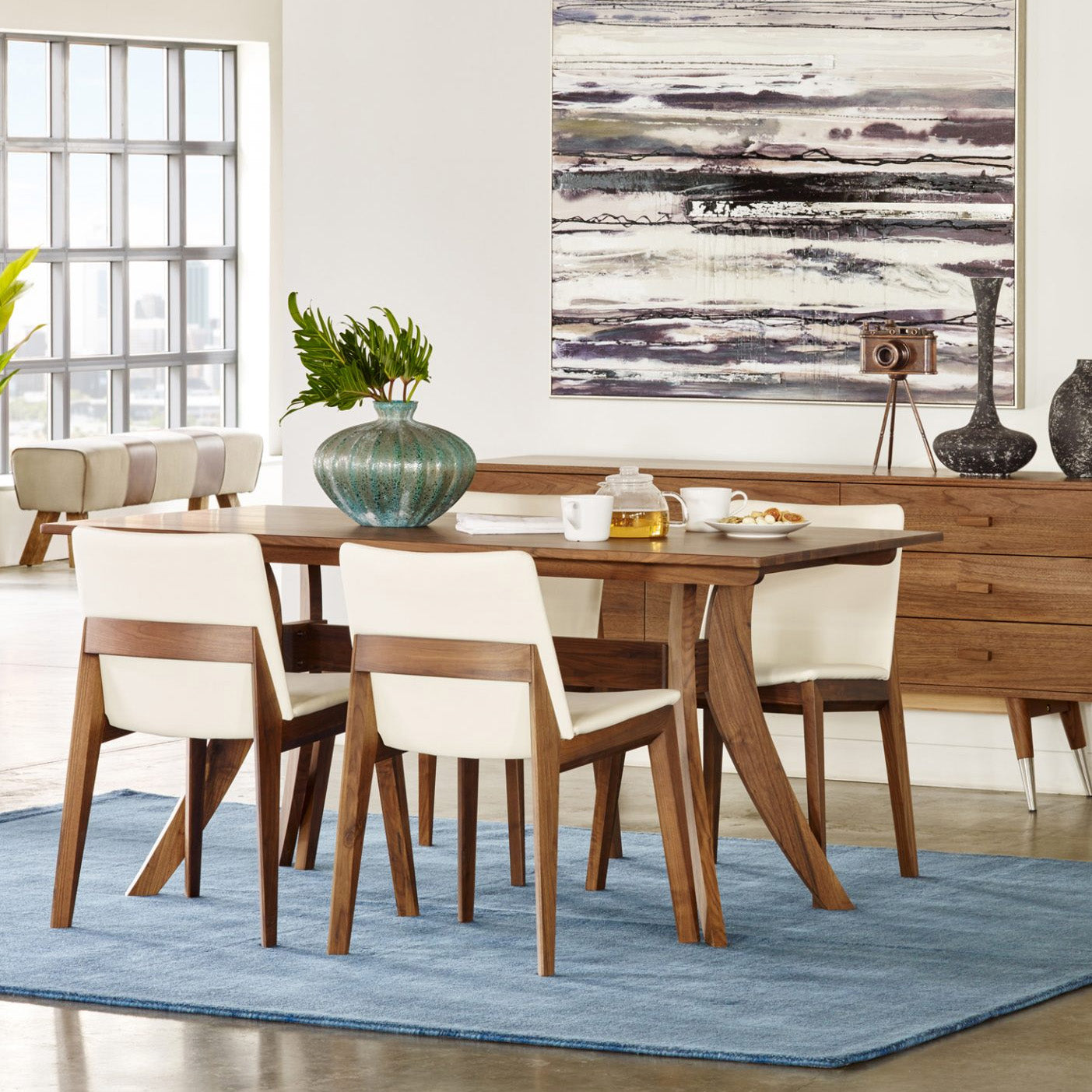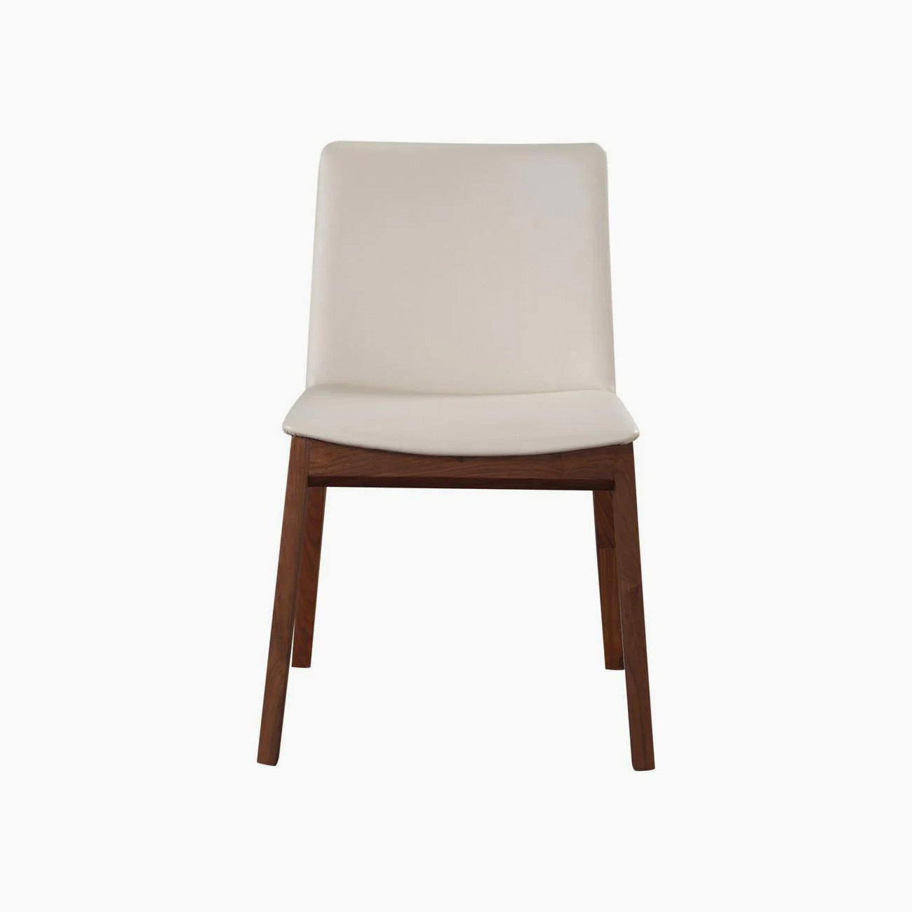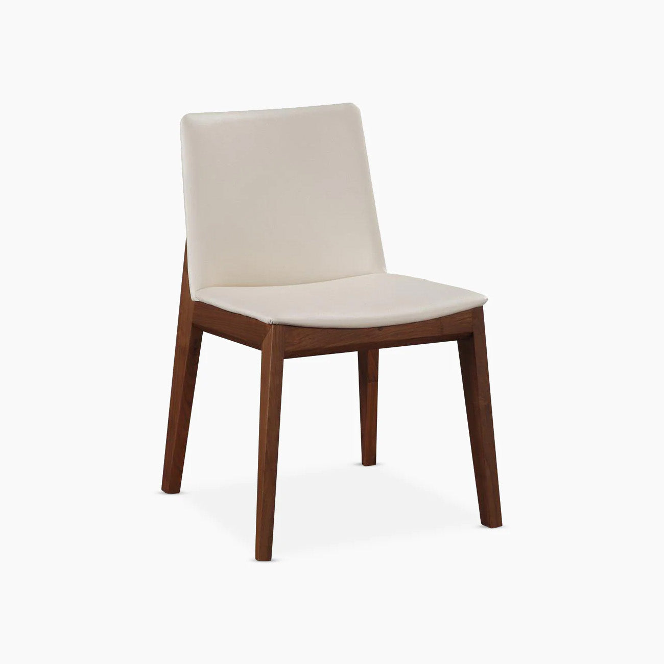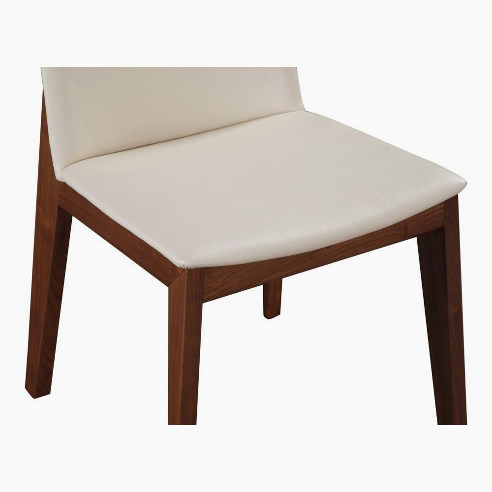 The Scandi Dining Chair is made from top-quality walnut, with a decidedly contemporary seat of white PVC. Comfort and looks, this chair has it all! Mid-Century Modern Style. Part of Deco collection. Made in Vietnam. We are offering a 1-year limited warranty (covered for any manufacturer's defect).