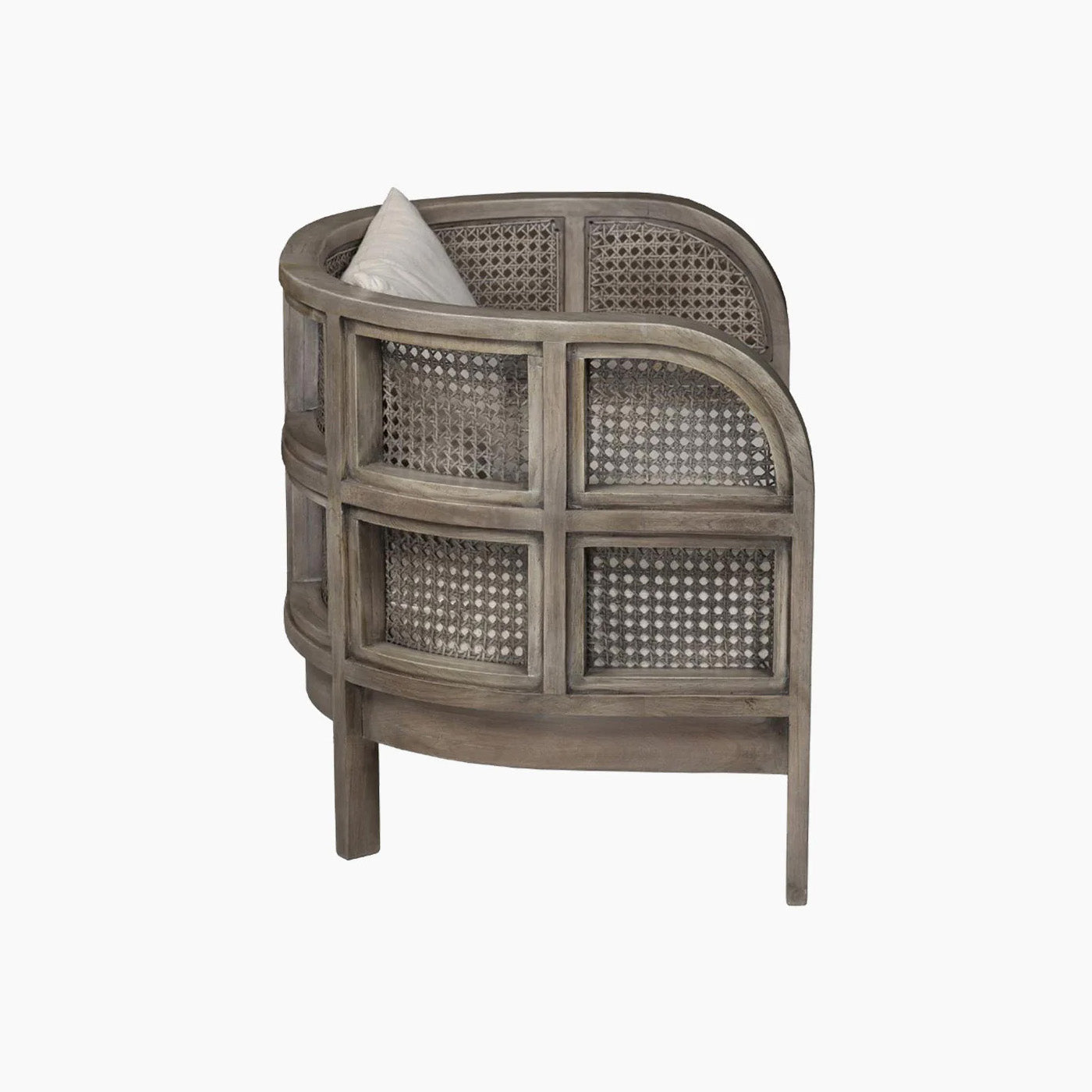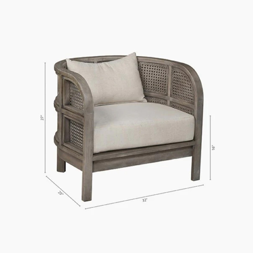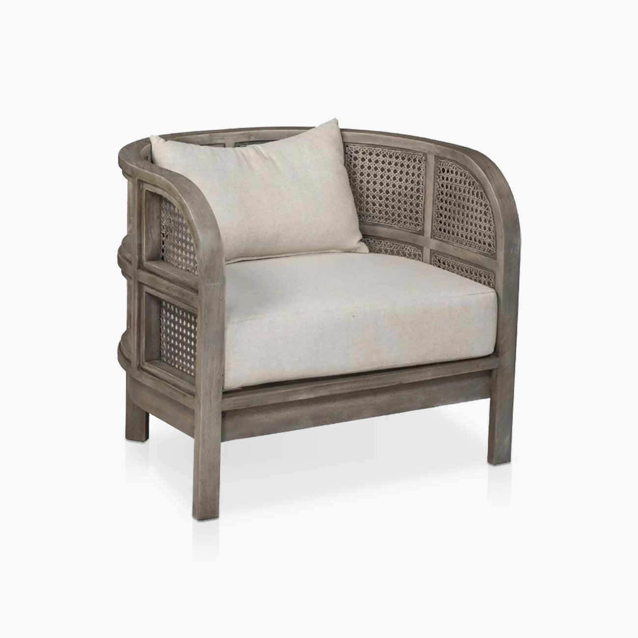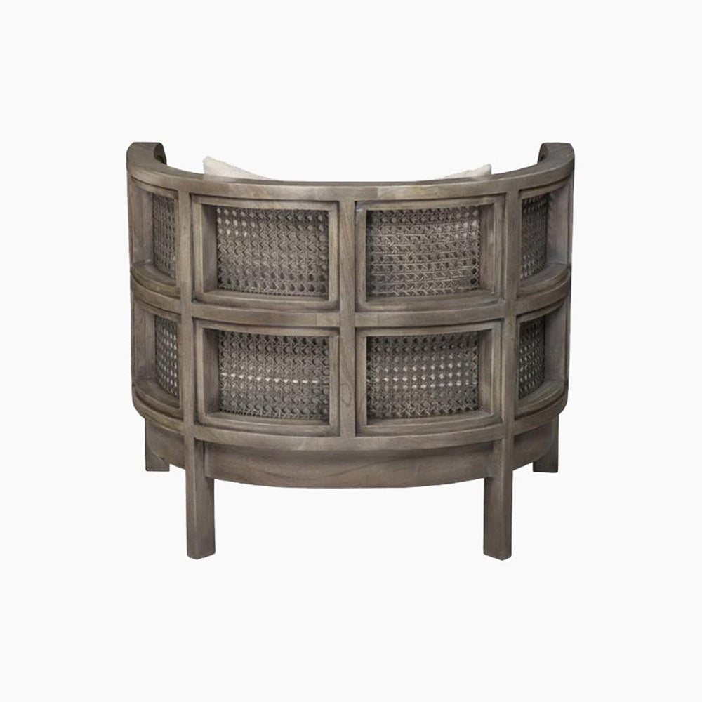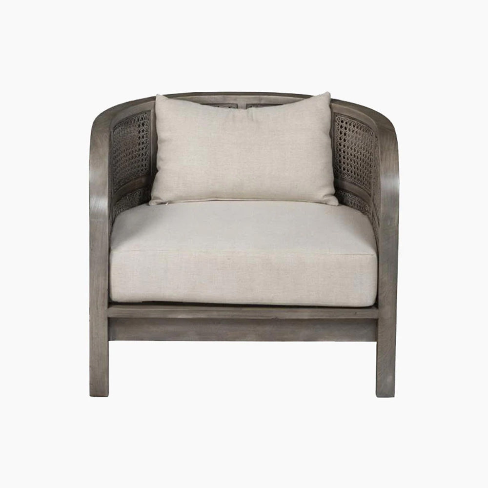 Embracing nature's forms, our Seeker Chair is made using recycled teak, hand-knotted cane, and natural linen.