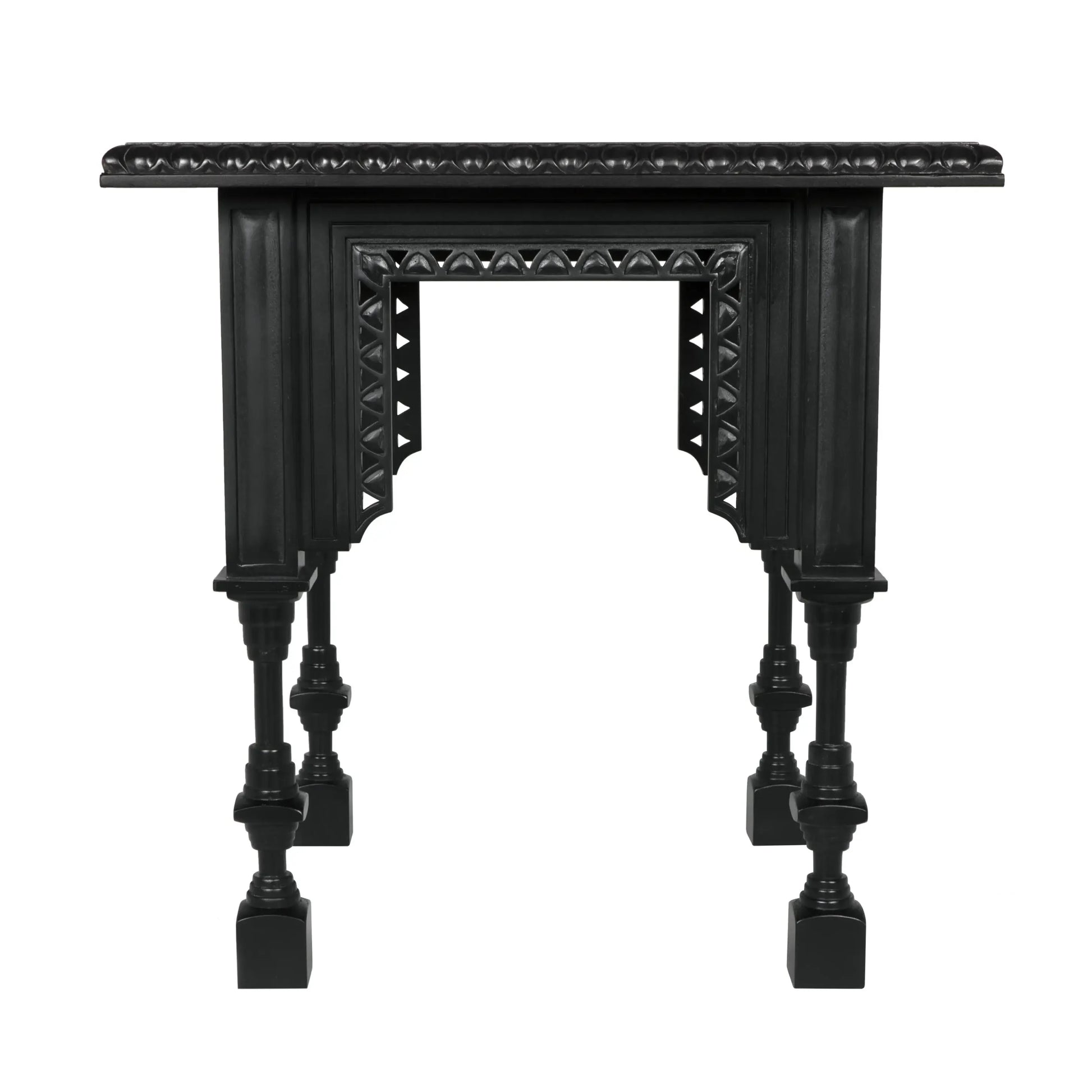Expertly crafted with mahogany and hand rubbed black finish, the Seraphic Side Table offers a sleek and elegant addition to any living space. This sturdy and stylish table provides both functionality and timeless beauty to elevate any room.