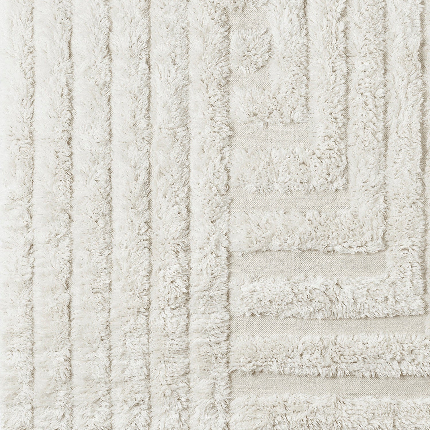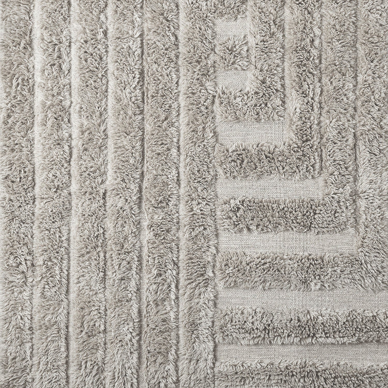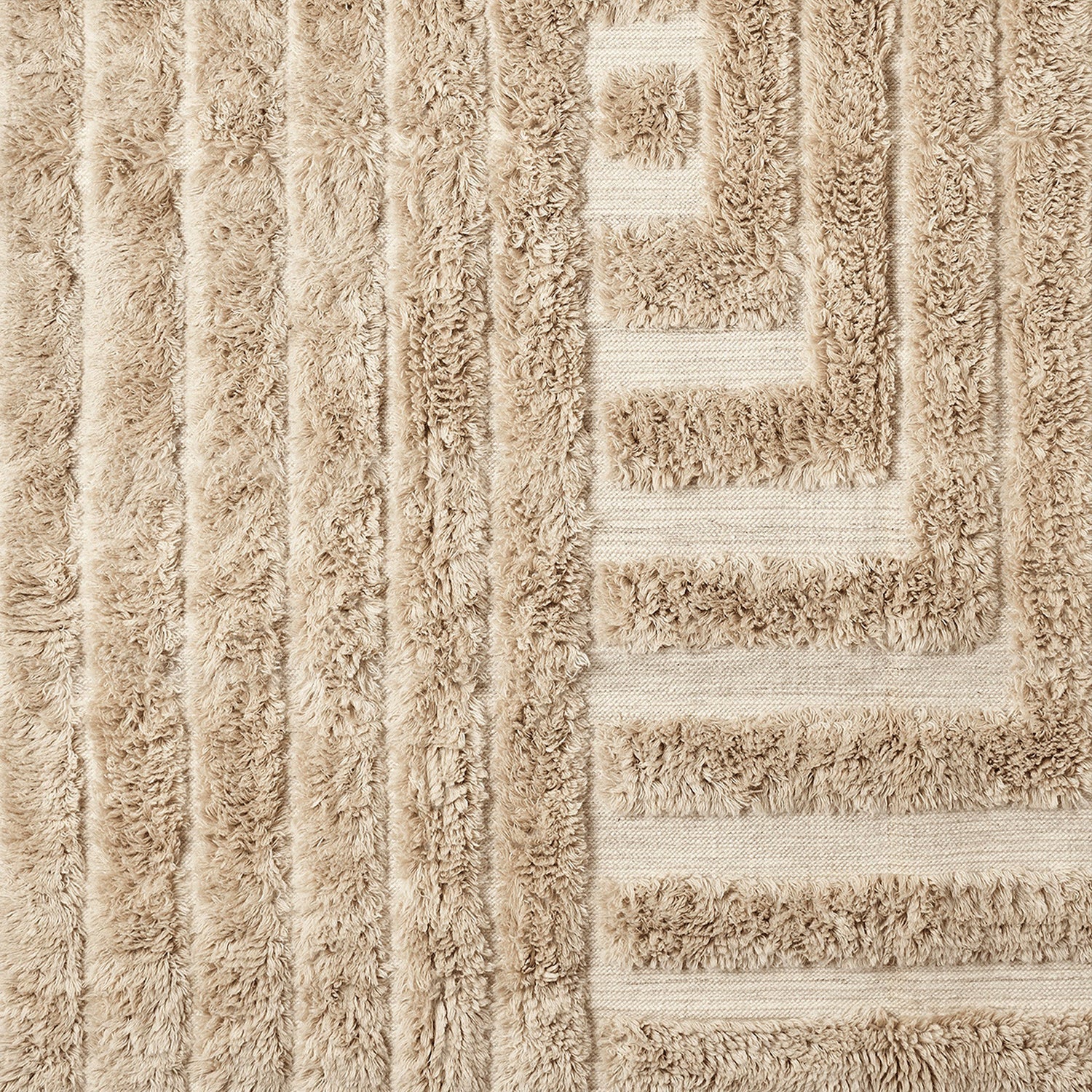 Shaggy Labyrinth Beige Rug is a patterned rug made from 100% wool. The distinctive labyrinth pattern is achieved by combining shaggy pile with flat weaved sections. This combination creates a unique and modern look with its high and low effect.