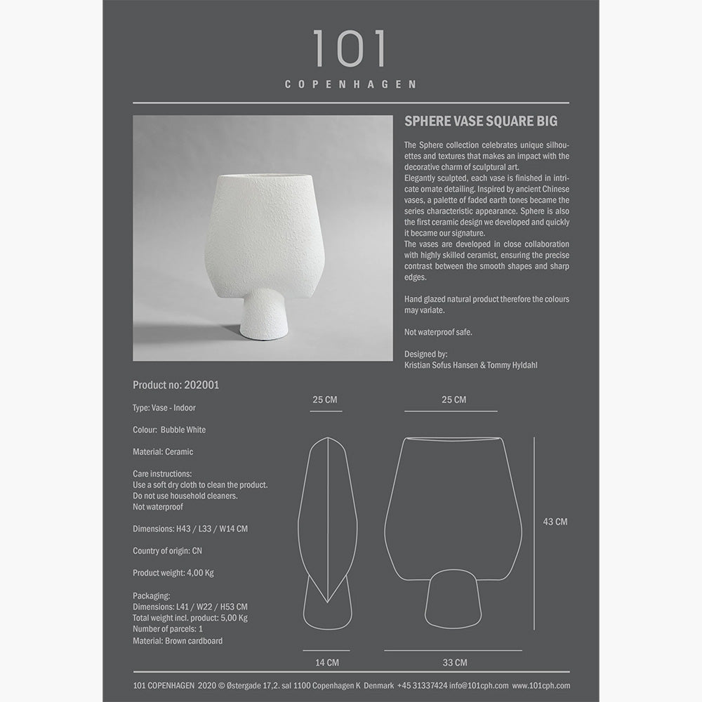 The Sphere series celebrates unique silhouettes and textures that makes an impact with the decorative charm of the series of vases in different shapes and sizes. Elegantly sculpted, each is finished in intricate ornate detailing. Combine with petals from dried summer blooms or stand alone to create a commanding focal point in the heart of your interior. Hand glazed natural product therefore the colours may variate. Not waterproof safe.