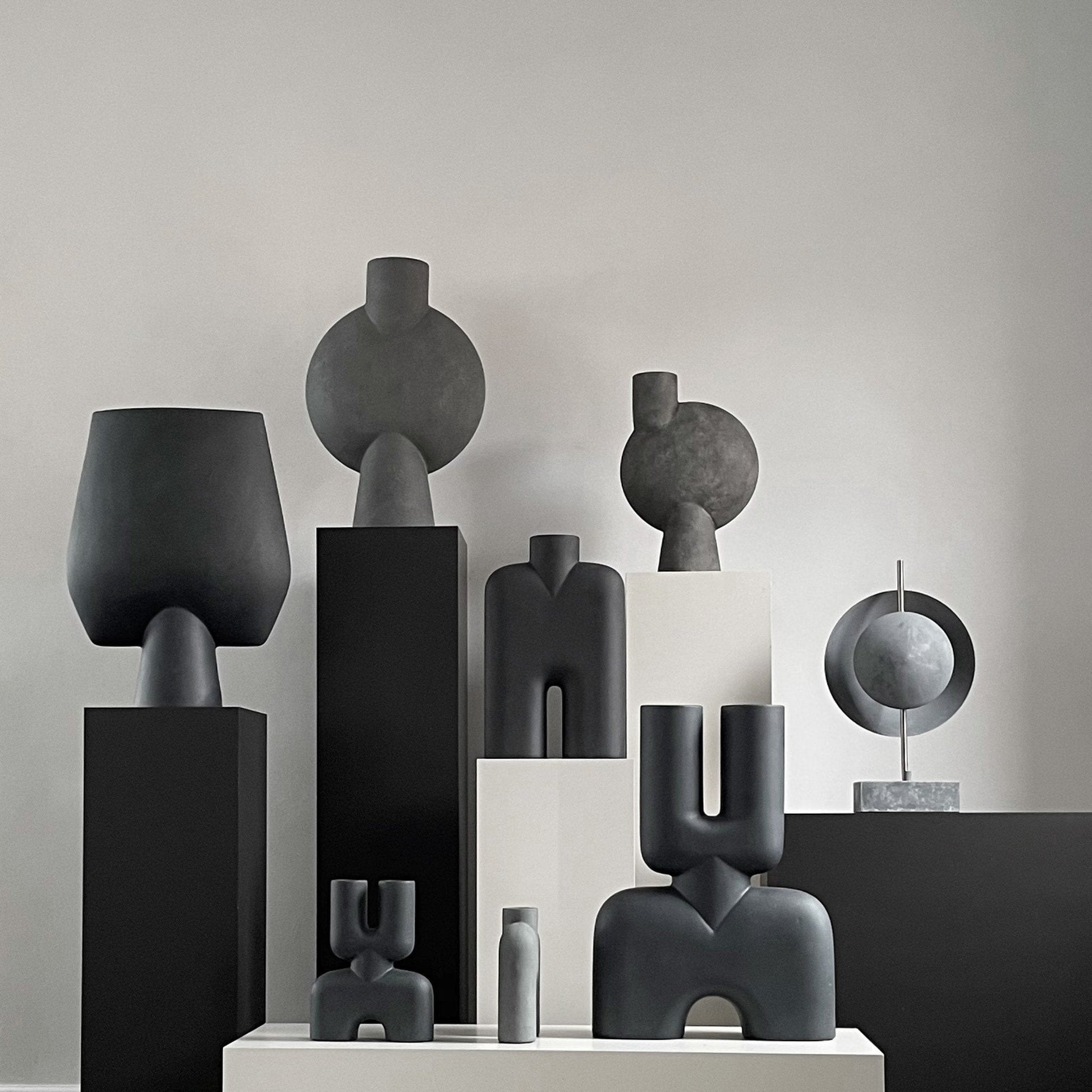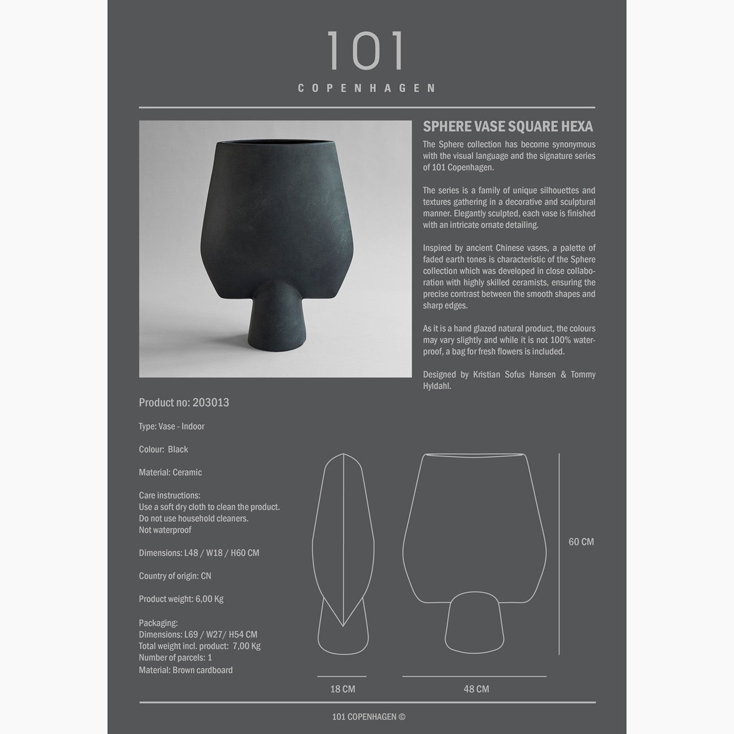The Sphere collection has become synonymous with the visual language and the signature series of 101 Copenhagen. The series is a family of unique silhouettes and textures gathering in a decorative and sculptural manner. Elegantly sculpted, each vase is finished with an intricate ornate detailing. Inspired by ancient Chinese vases, a palette of faded earth tones is characteristic of the Sphere collection which was developed in close collaboration with highly skilled ceramists, ensuring the precise contrast between the smooth shapes and sharp edges. As it is a hand glazed natural product, the colours may vary slightly and while it is not 100% waterproof, a bag for fresh flowers is included.