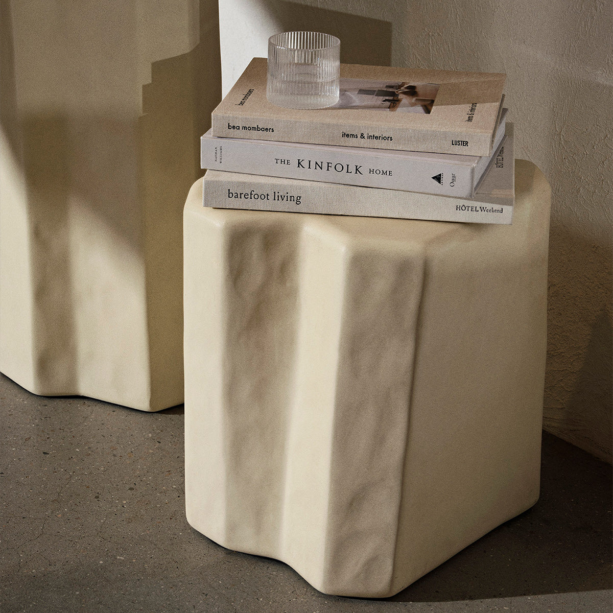 Inspired by the unique volcanic rock formations found on the ancient island of Staffa in Scotland, the Staffa collection features a series of bold furniture pieces. Paying homage to their namesake, which means pillar in old Norse, every piece is crafted entirely from glass fibre reinforced concrete, using an innovative casting process that provides each item with a rough, uneven shape reminiscent of blocks of carved stone.