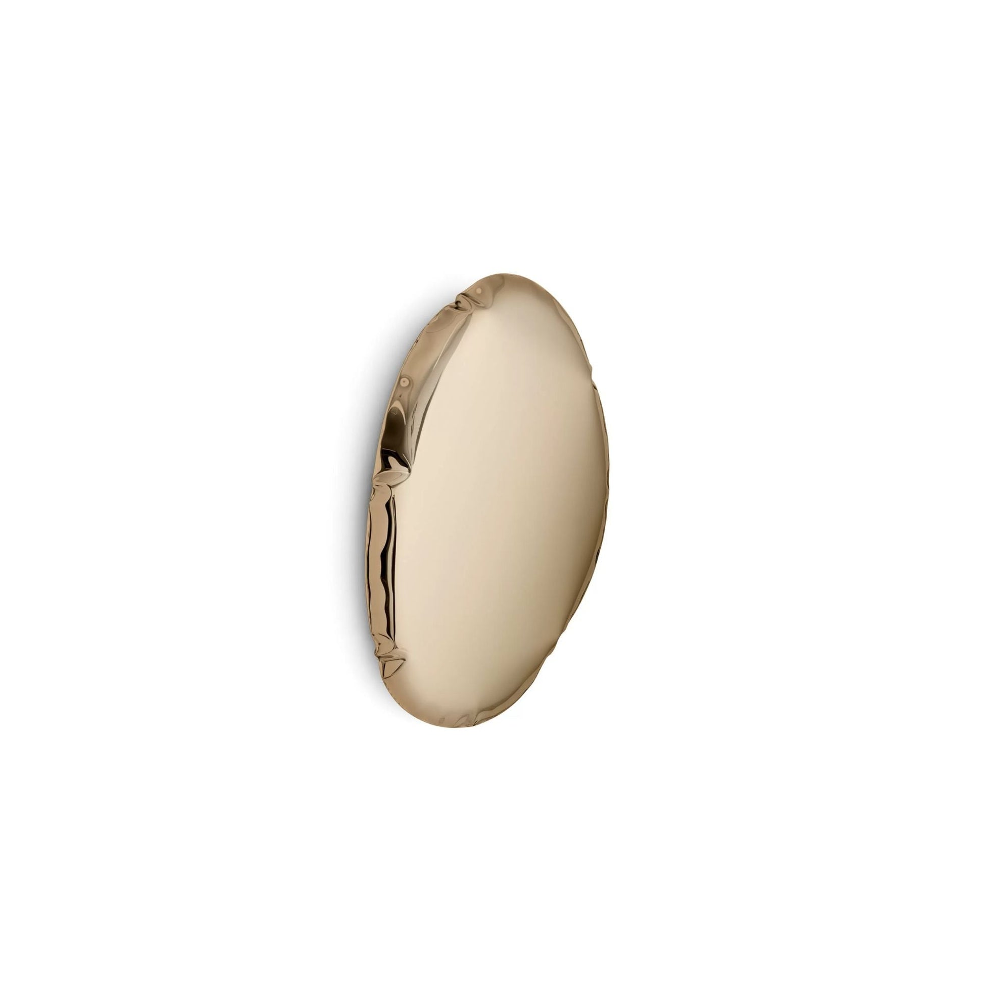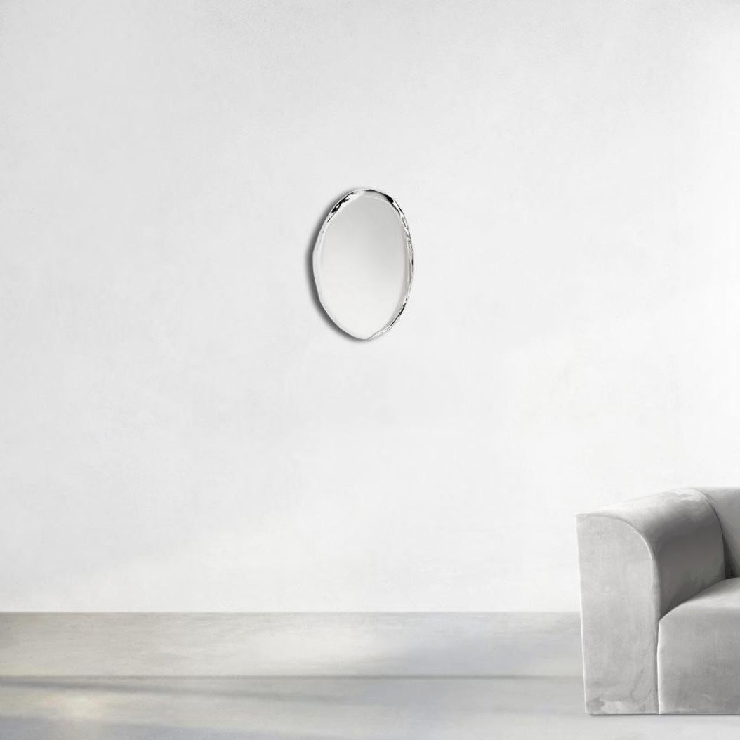 TAFLA O mirror is a bionic sculptural object made by Zieta Studio using FiDU technology. The irregular shape of the mirror is an effect of inflating two-dimensional metal sheets with pressurized air – this way some slight distortions appear on the edges giving each object a unique character.