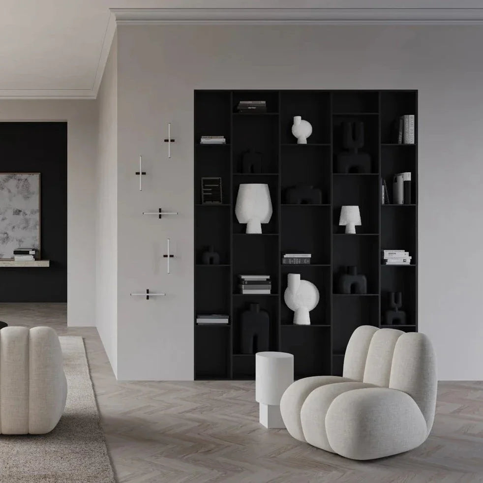 Influenced by minimalism art, the Stick collection is all about combining light and sculptures into graphic lighting design. Named after its ’Stick’ lampshade, each lamp is characterized by an illuminating white acrylic tube. The white acrylic tube holds an inbuilt LED light source, with details of plated metal fittings at each end of the tube. Mounted on simple and geometric metal fixtures, the Stick lamps creates an almost graphic expression.