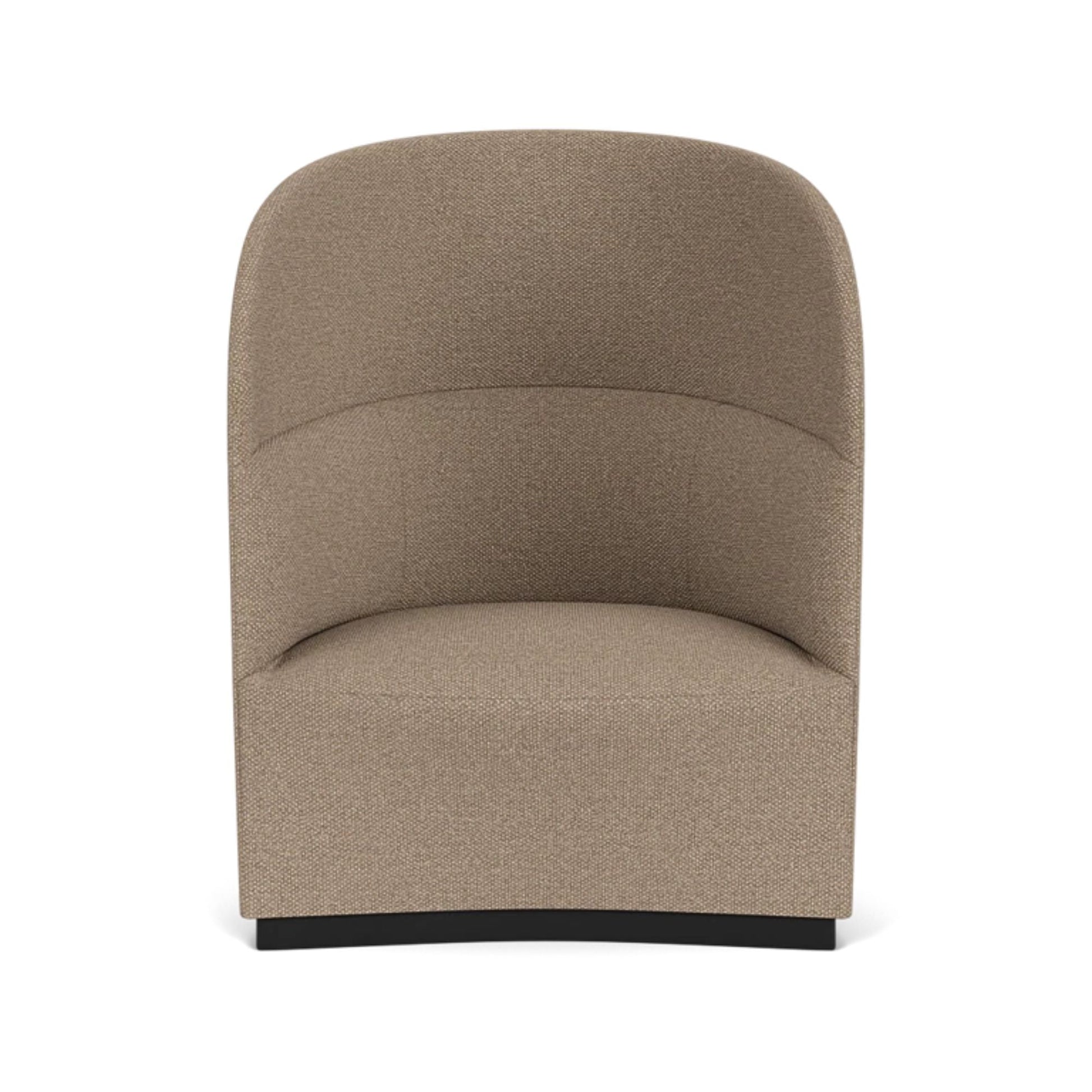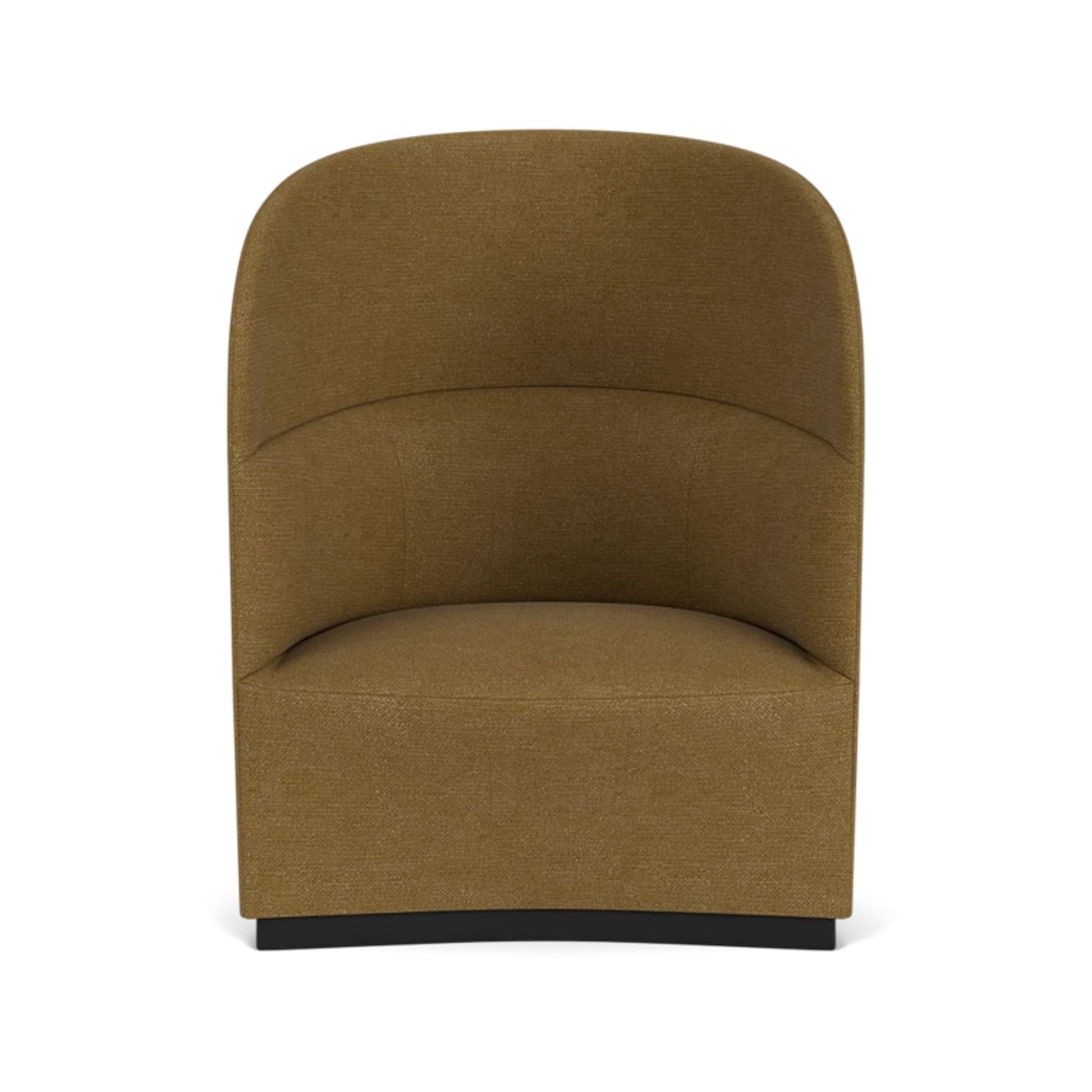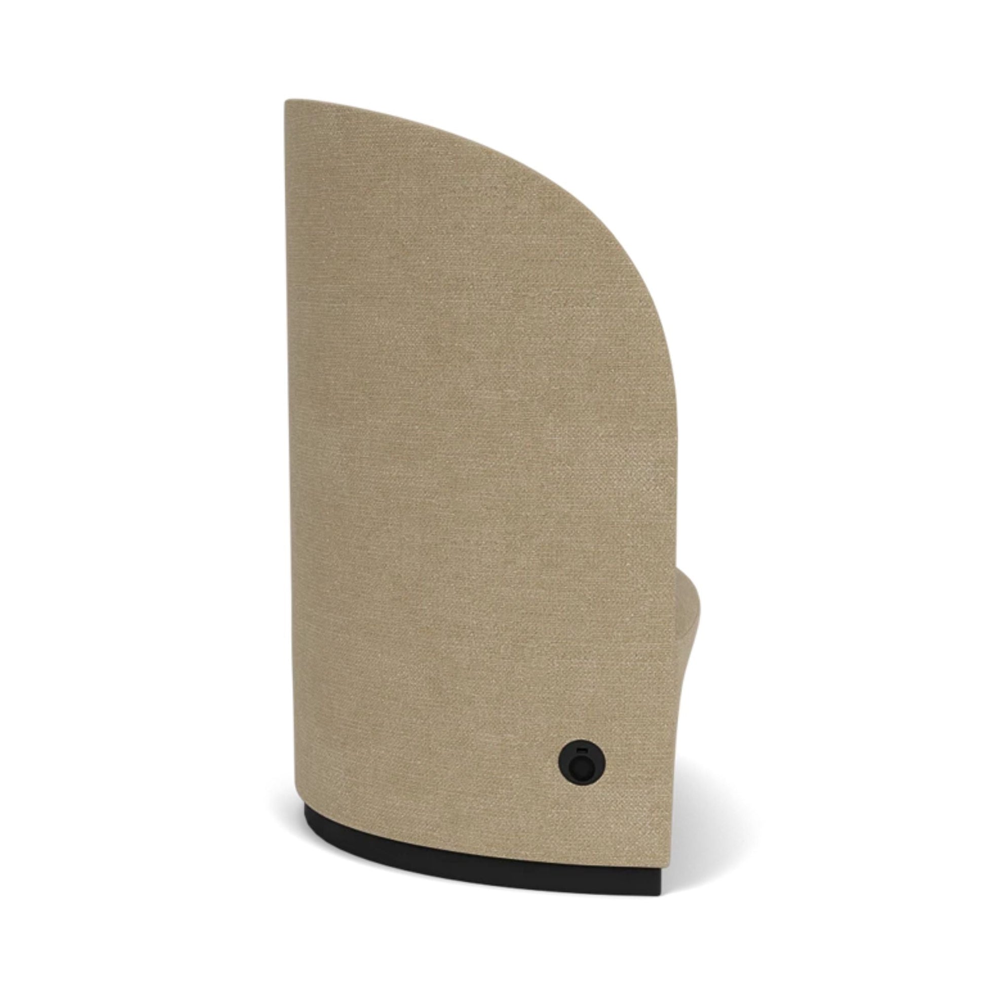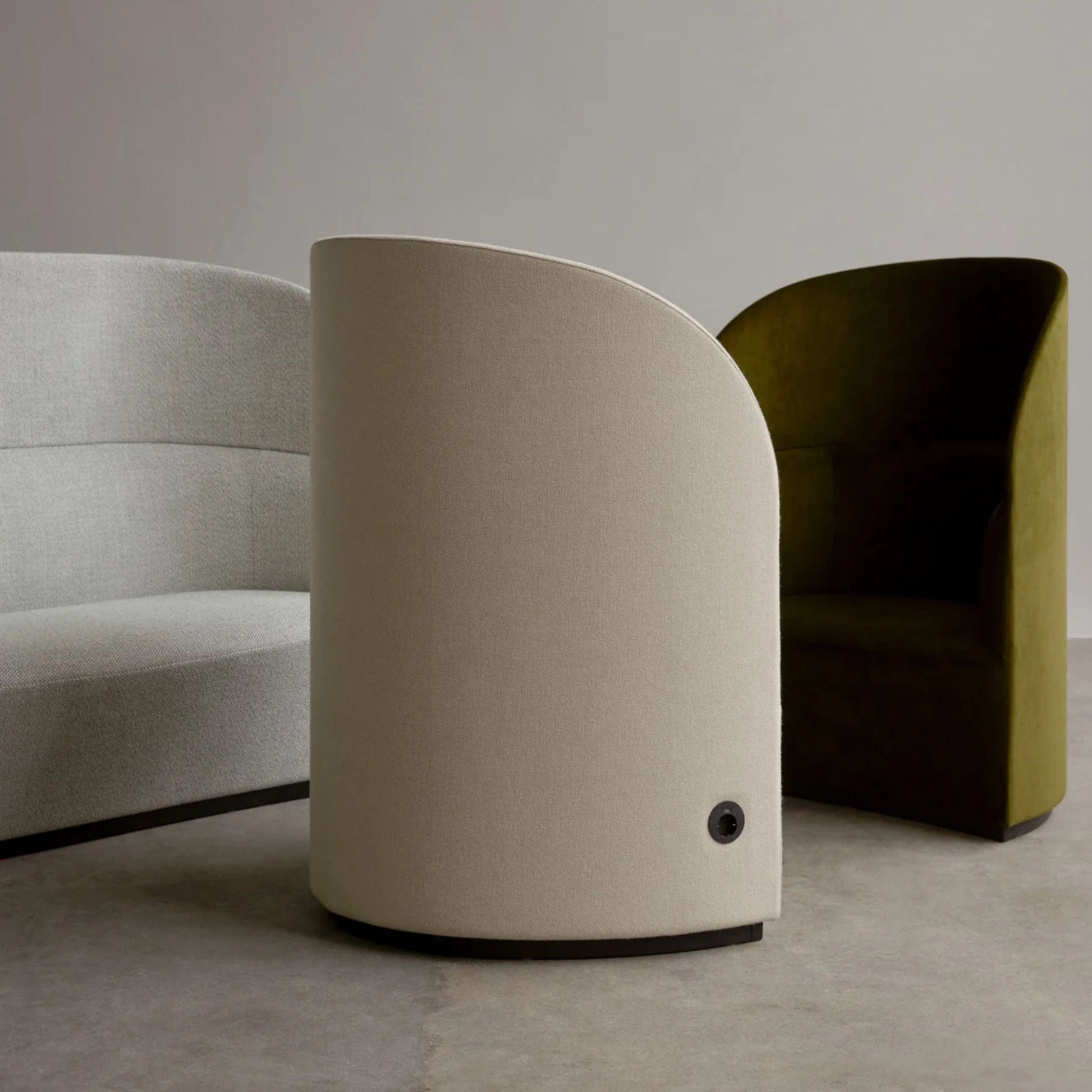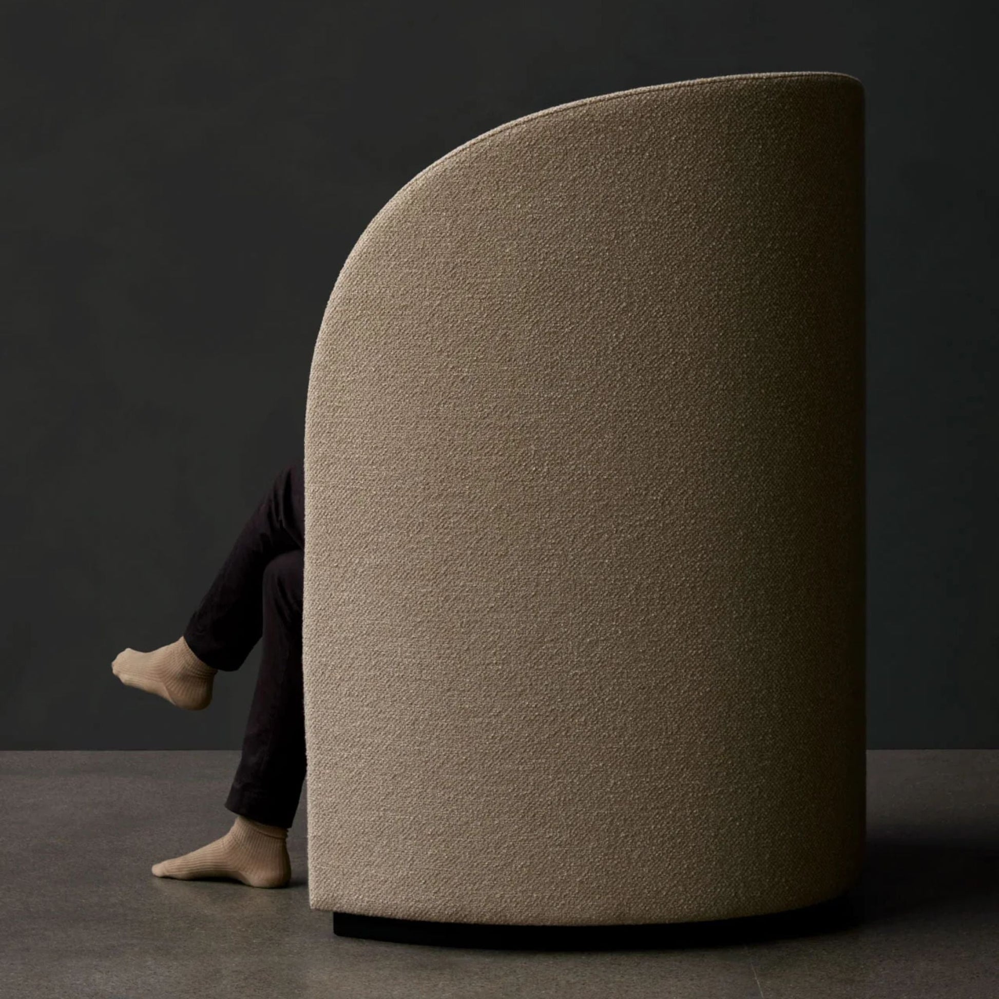 The high back version of the Tearoom Lounge Chair offers moments of quiet contemplation in busy spaces. Expressive and elegant, the secluded, foam-filled furniture piece rests on a wooden base for a natural contrast to the upholstered seat. The addition of a USB port and power socket at the base makes it a practical spot for work as well as play.