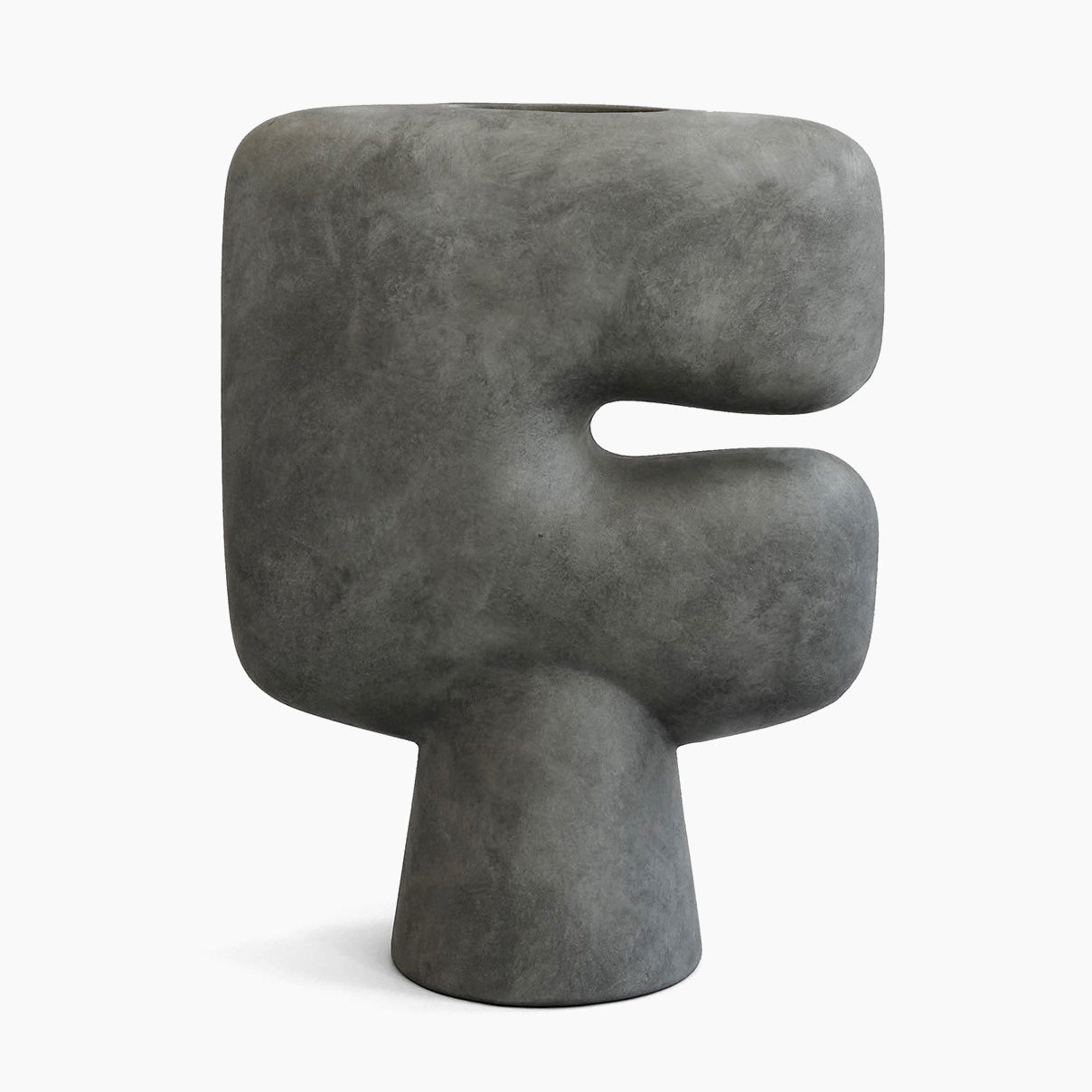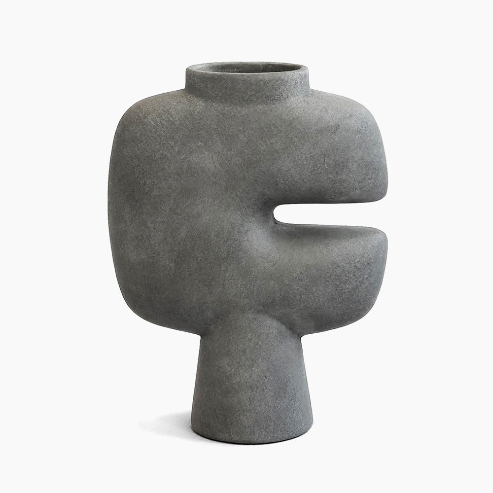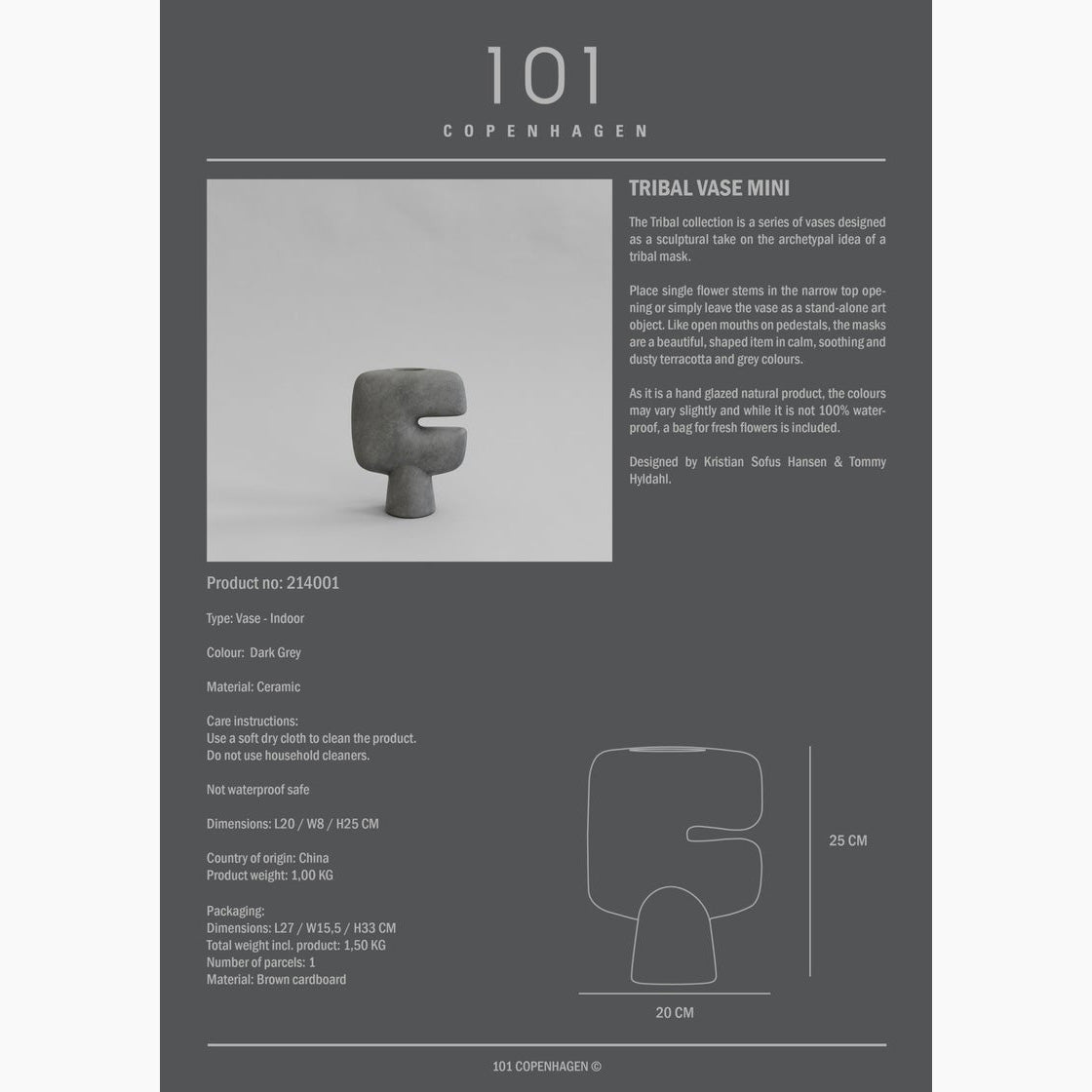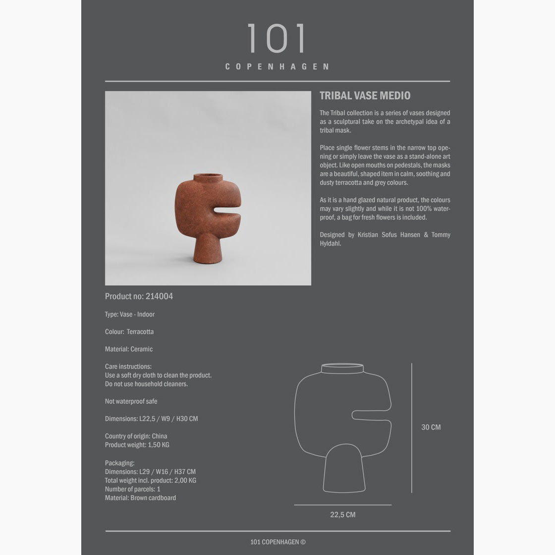 The Tribal collection is a series of vases designed as a sculptural take on the archetypal idea of a tribal mask. Place single flower stems in the narrow top opening or simply leave the vase as a standalone art object. Like open mouths on pedestals, the masks are a beautiful shaped item in calm, soothing and dusty terracotta and grey colours. As it is a hand glazed natural product, the colours may vary slightly and while it is not 100% waterproof, a bag for fresh flowers is included.