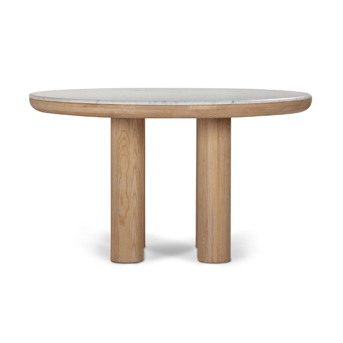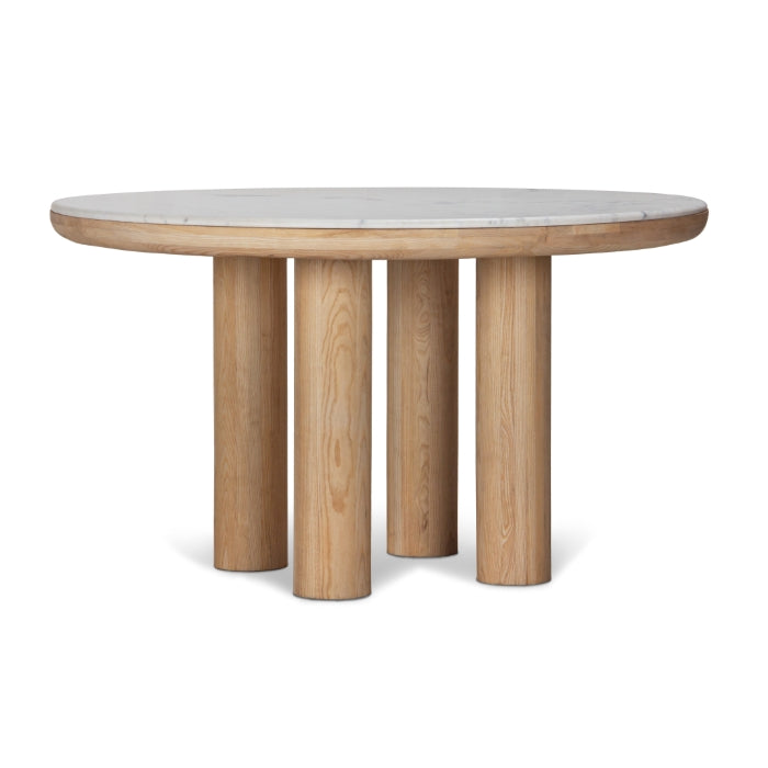 Combining simple geometry with an elegant mix of materials, the Tube Marble Table strikes a bold profile. Four sturdy, solid Ash legs gracefully support a softly profiled, solid Banswara marble top that seamlessly transitions into a sculpted, solid Ash apron.