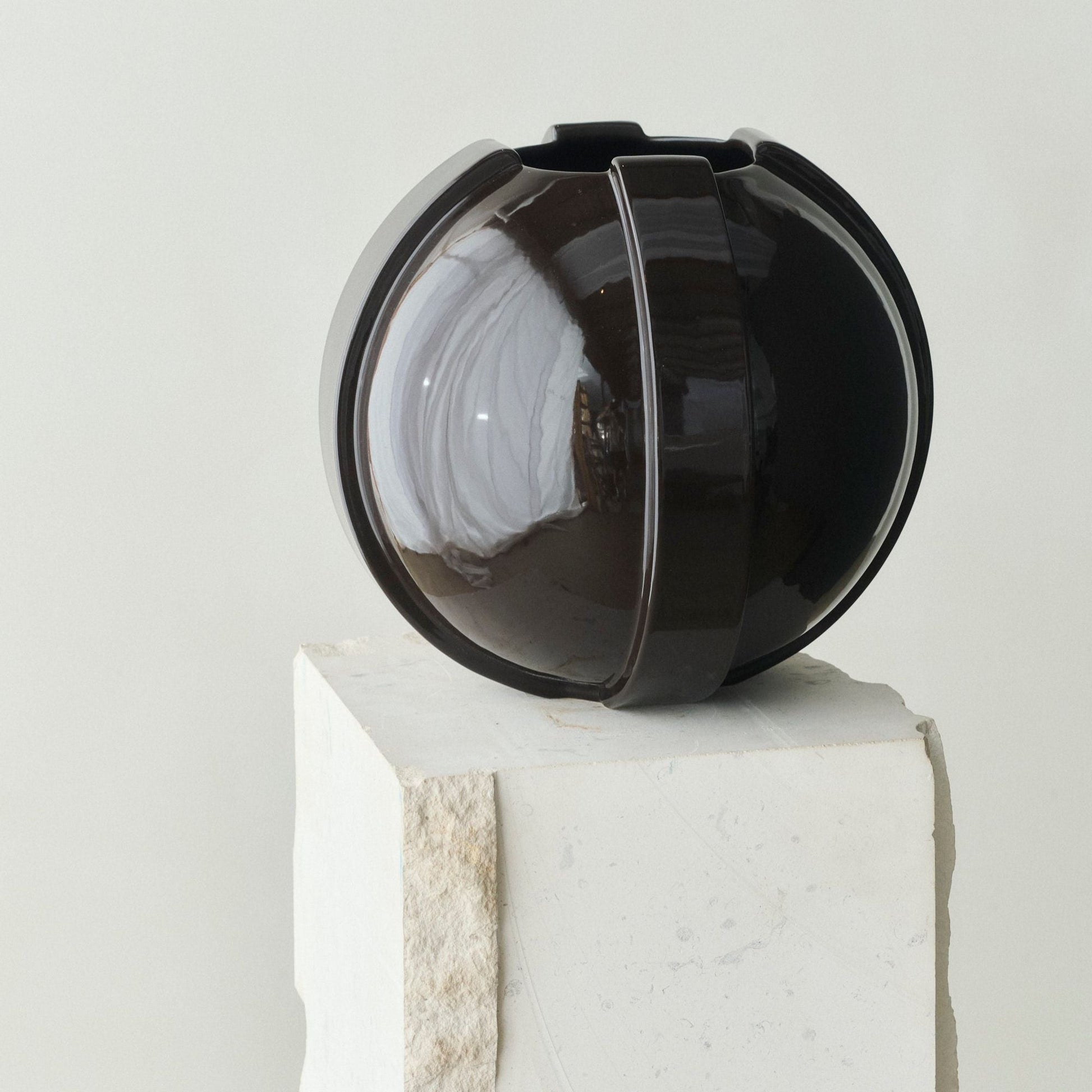 The vinci vase displays a round silhouette, accented by a belt-like band encircling its figure - a visual detail that metaphorically channels circular energy. Artisanally hand-molded in Portugal, it comes in two sizes. The larger impression is a grande sculpture, standing independently.