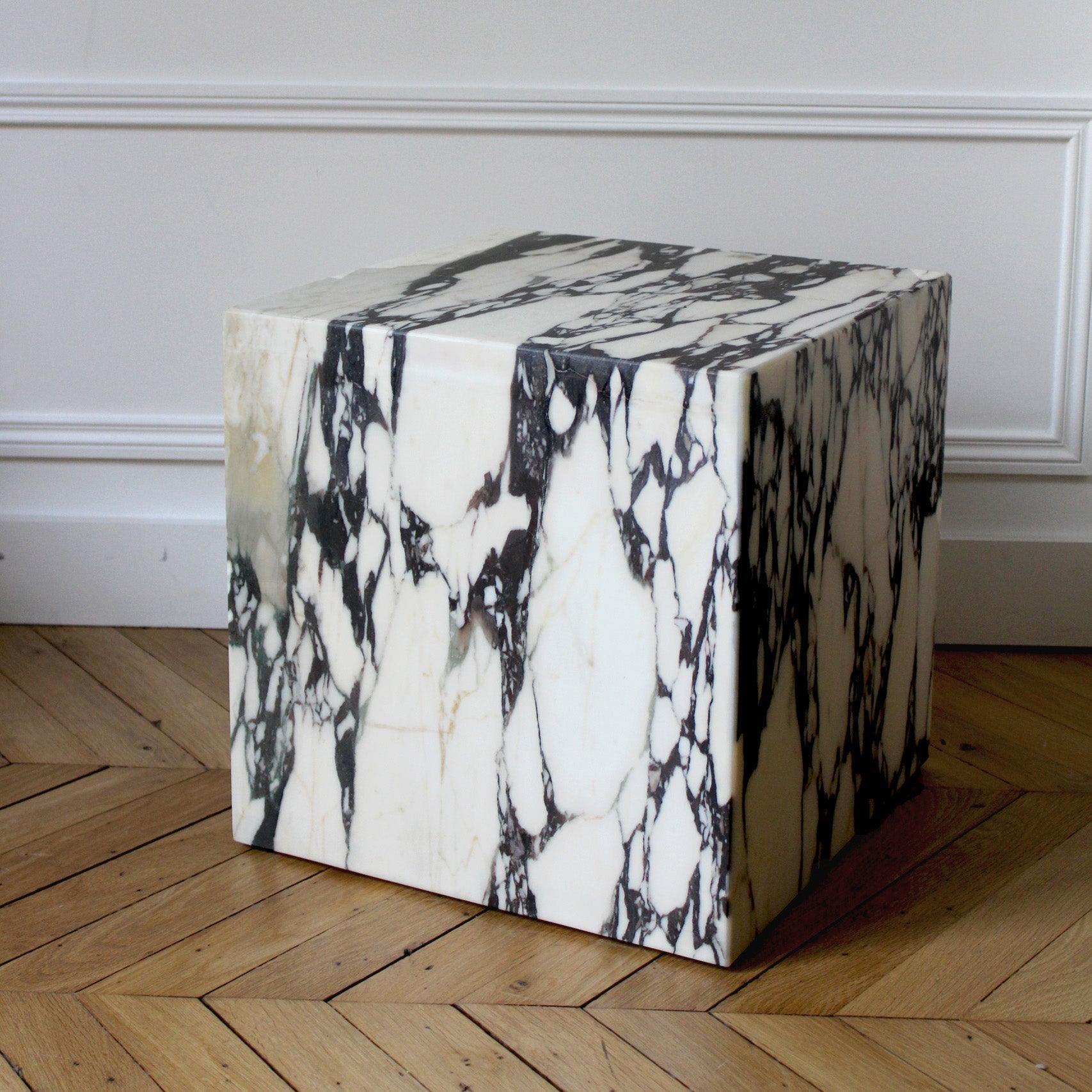 Minimalist marble cube with 5 sides. Can be used as a side table, bedside table, stool or as a simple decorative element. Bring a unique design touch to your interior.