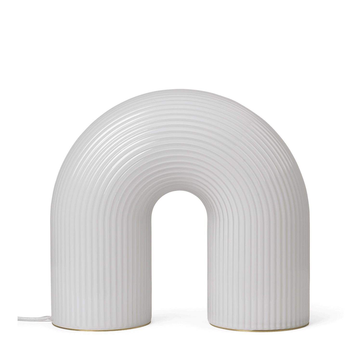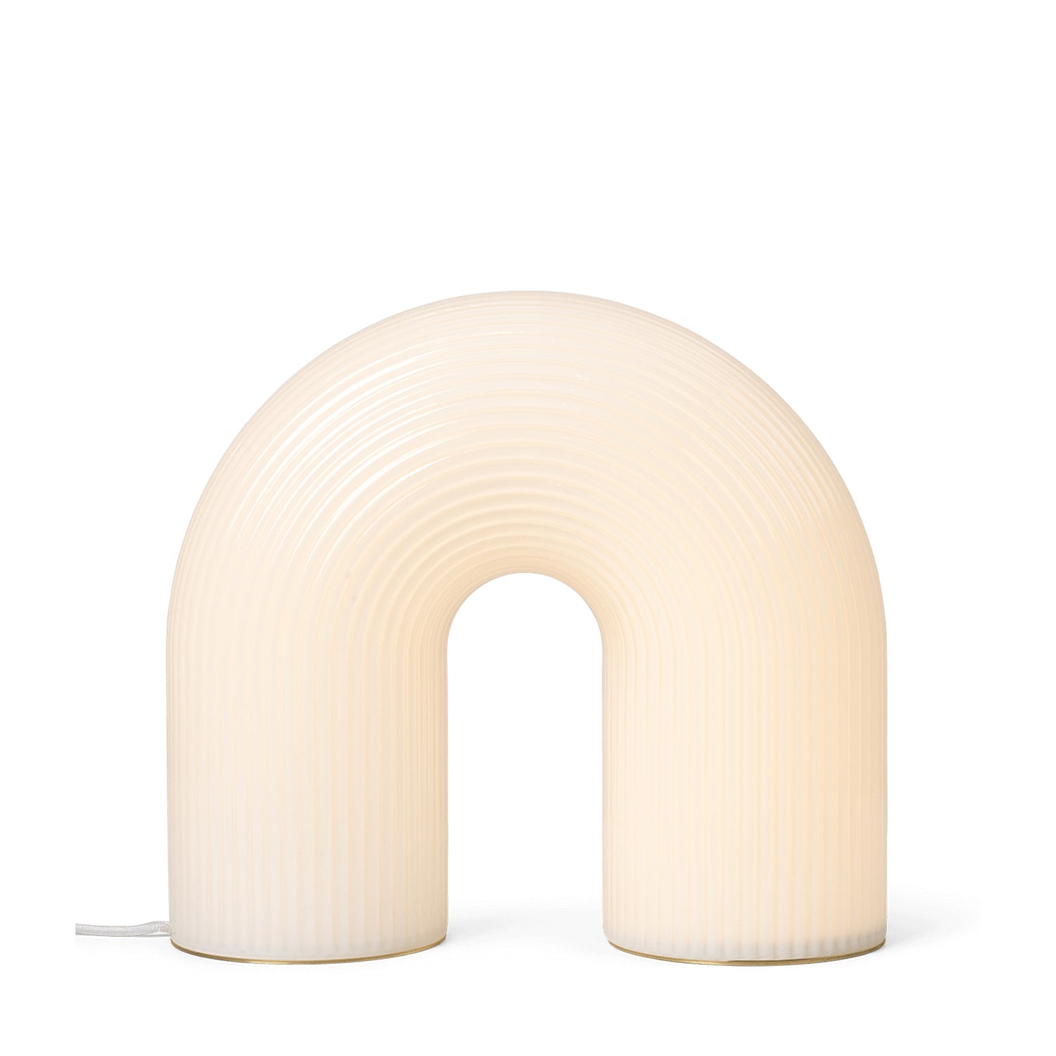 A bold light with a sculptural arc reminiscent of ancient columns, our Vuelta Floor Lamp is made from opal glass with a rippled surface that lends textural appeal to the piece. Featuring oversized dimensions, the artistic Vuelta Floor Lamp will serve as both a sculpture and lamp in your home. Designed with an LED light source that emits a soft, diffused light, it also features an adjustable dimmer switch for ultimate ambiance control.