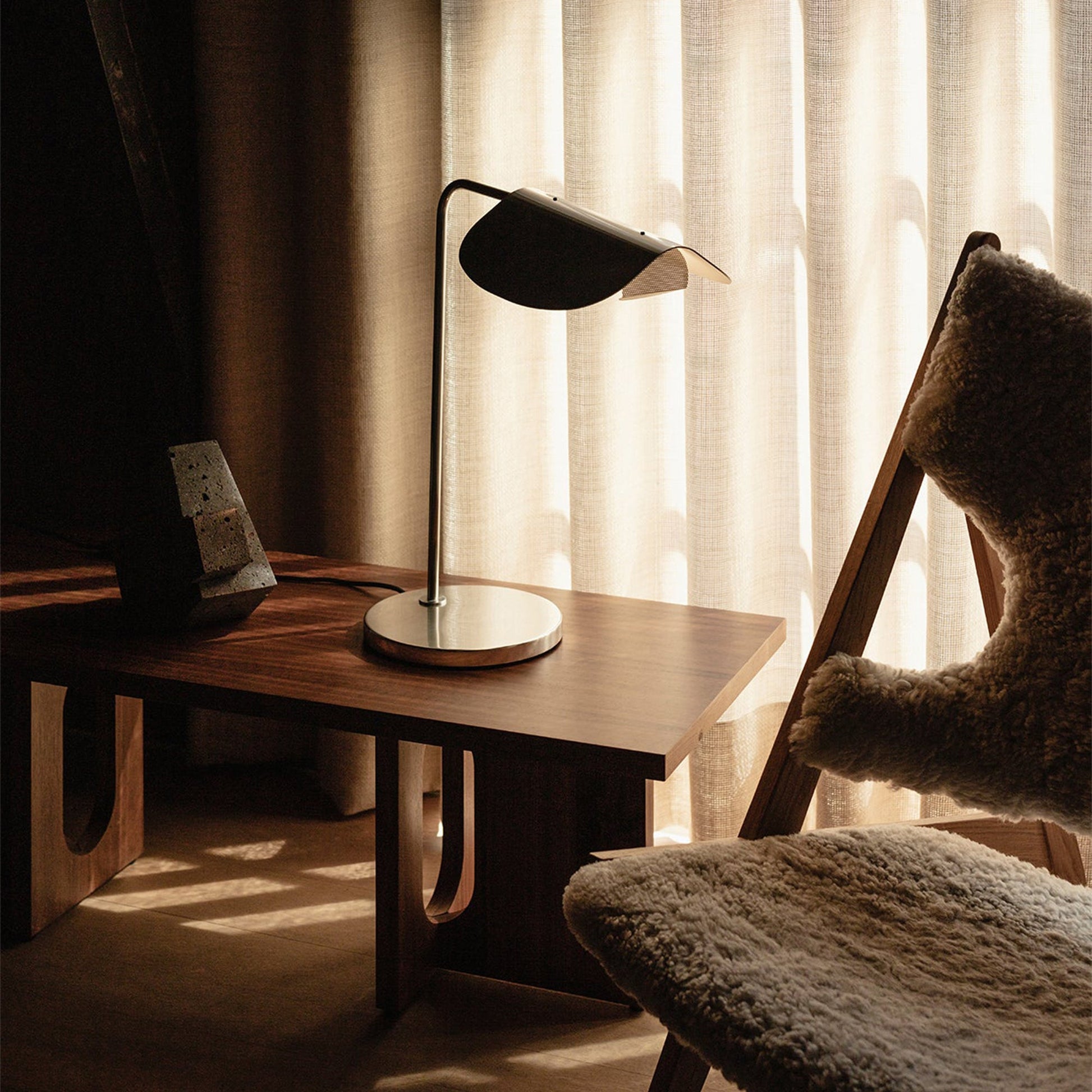 The Wing Table Lamp takes its name from its wing-like shade, reminiscent of a bird in flight. Imagined in the 1980s by Kenneth Bergenblad, the stringent design has a playful feel. The polished aluminium shade rotates to direct light where it is needed. A statement-making piece in any setting, its minimal aesthetic ensures it blends seamlessly into any décor style.
