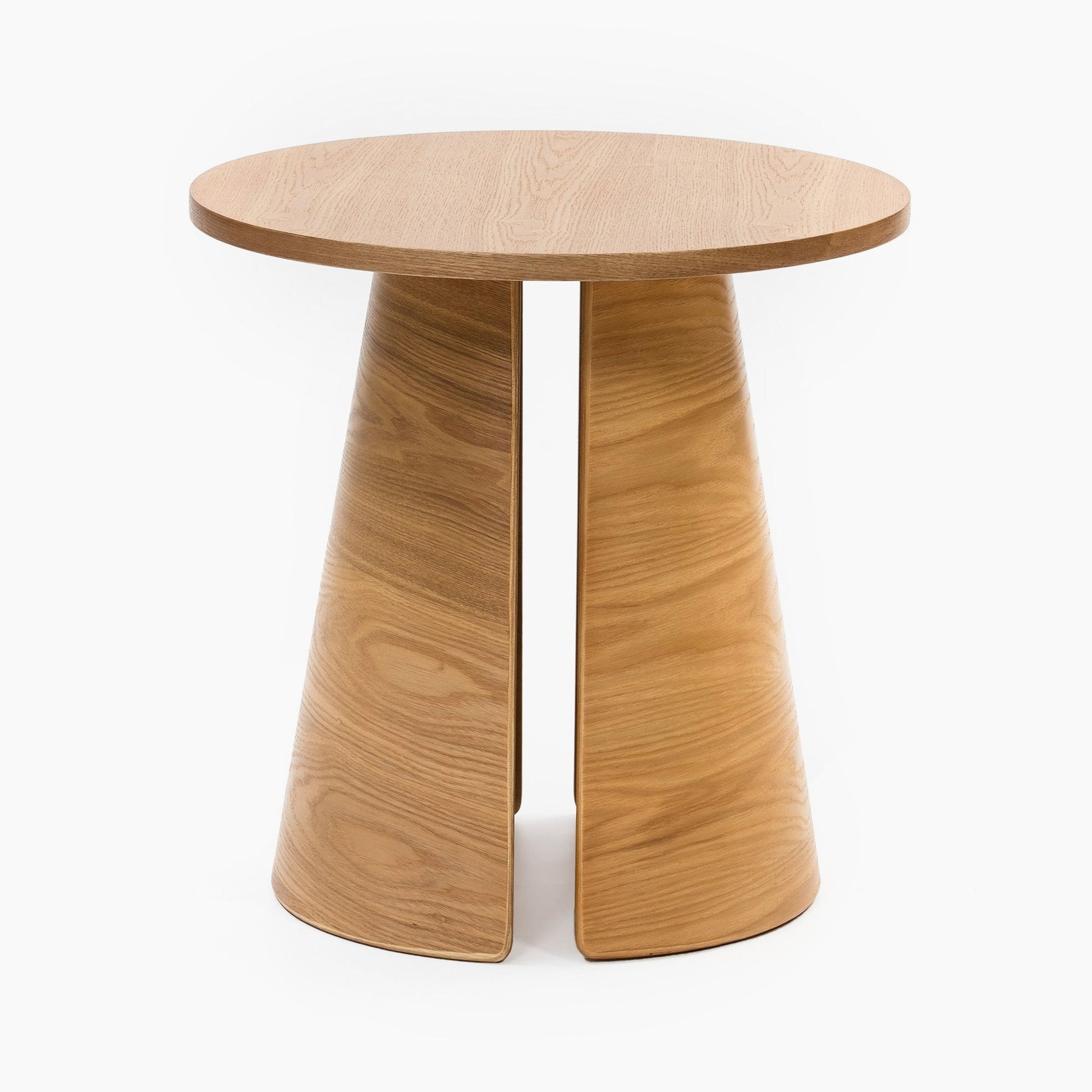 The design of the table is simple, emphasizing the nobility and beautiful properties of the material. It consists of only three parts - two symmetrical curved legs and a round tabletop, the combination of which ensures a stable and eye-catching auxiliary table in a modern space.